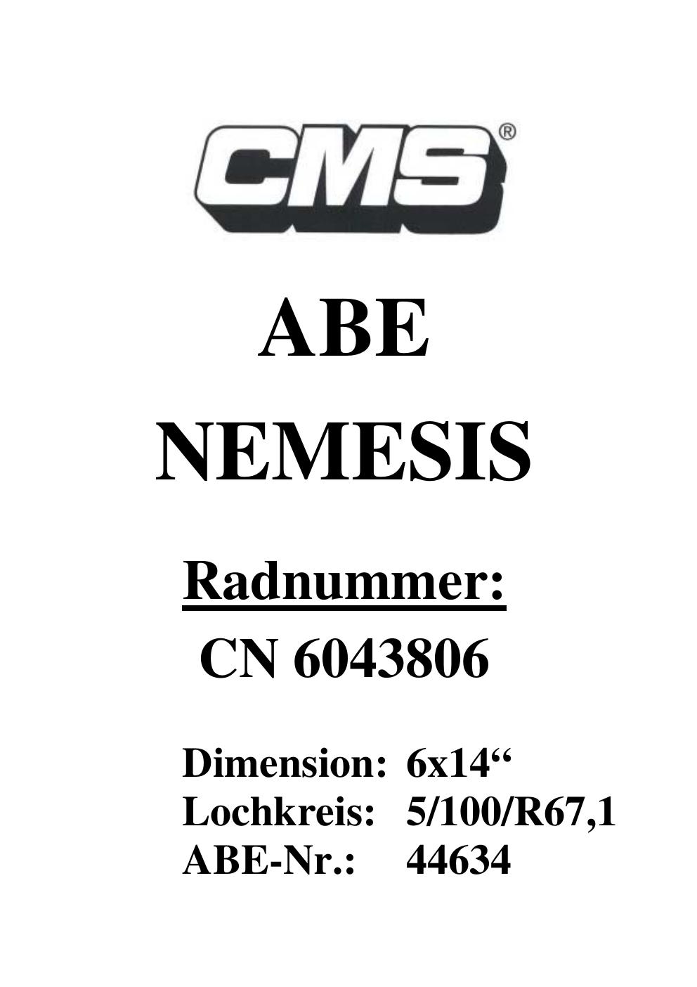 Dieses Gutachten (ABE) bezieht sich auf die Alufelge CMS UNKNOWN in der Ausführung ET 0, Mittenloch 0 mm (KBA 44634). Im PDF findest du typischerweise zulässige Reifengrößen, Auflagen/Anbauhinweise und – je nach Dokument – Hinweise zur Eintragung.