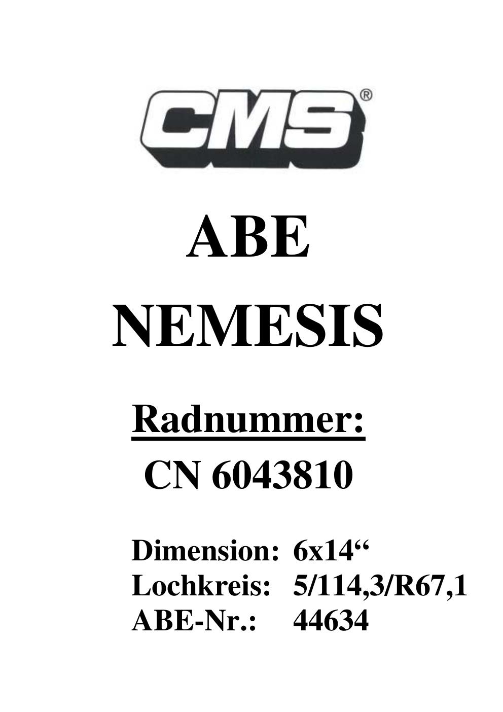Dieses Gutachten (ABE) bezieht sich auf die Alufelge CMS UNKNOWN in der Ausführung ET 0, Mittenloch 0 mm (KBA 44634). Im PDF findest du typischerweise zulässige Reifengrößen, Auflagen/Anbauhinweise und – je nach Dokument – Hinweise zur Eintragung.