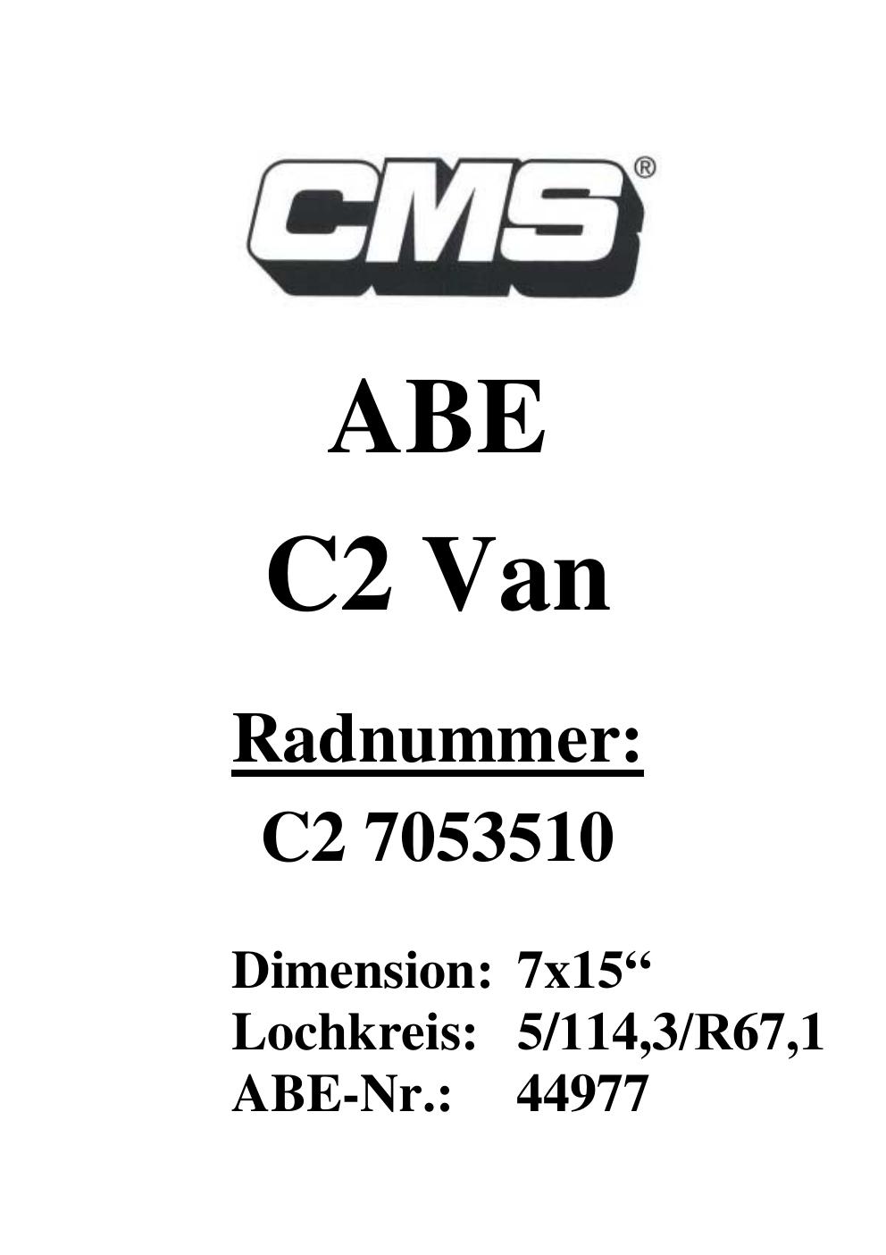 Dieses Gutachten (ABE) bezieht sich auf die Alufelge CMS UNKNOWN in der Ausführung ET 0, Mittenloch 0 mm (KBA 44977). Im PDF findest du typischerweise zulässige Reifengrößen, Auflagen/Anbauhinweise und – je nach Dokument – Hinweise zur Eintragung.