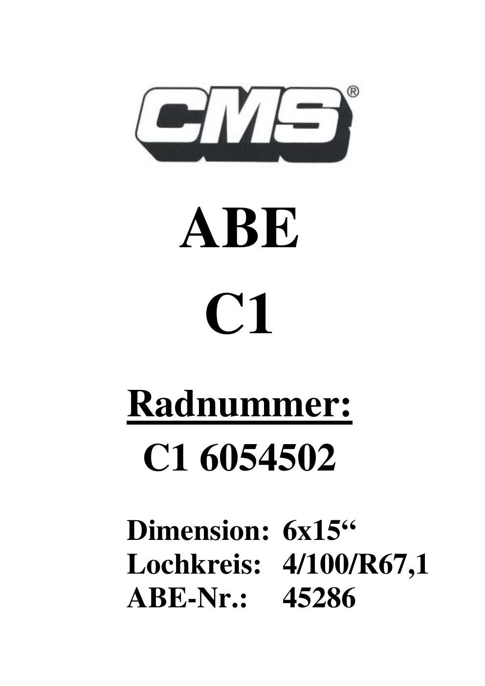 Dieses Gutachten (ABE) bezieht sich auf die Alufelge CMS UNKNOWN in der Ausführung ET 0, Mittenloch 0 mm (KBA 45286). Im PDF findest du typischerweise zulässige Reifengrößen, Auflagen/Anbauhinweise und – je nach Dokument – Hinweise zur Eintragung.