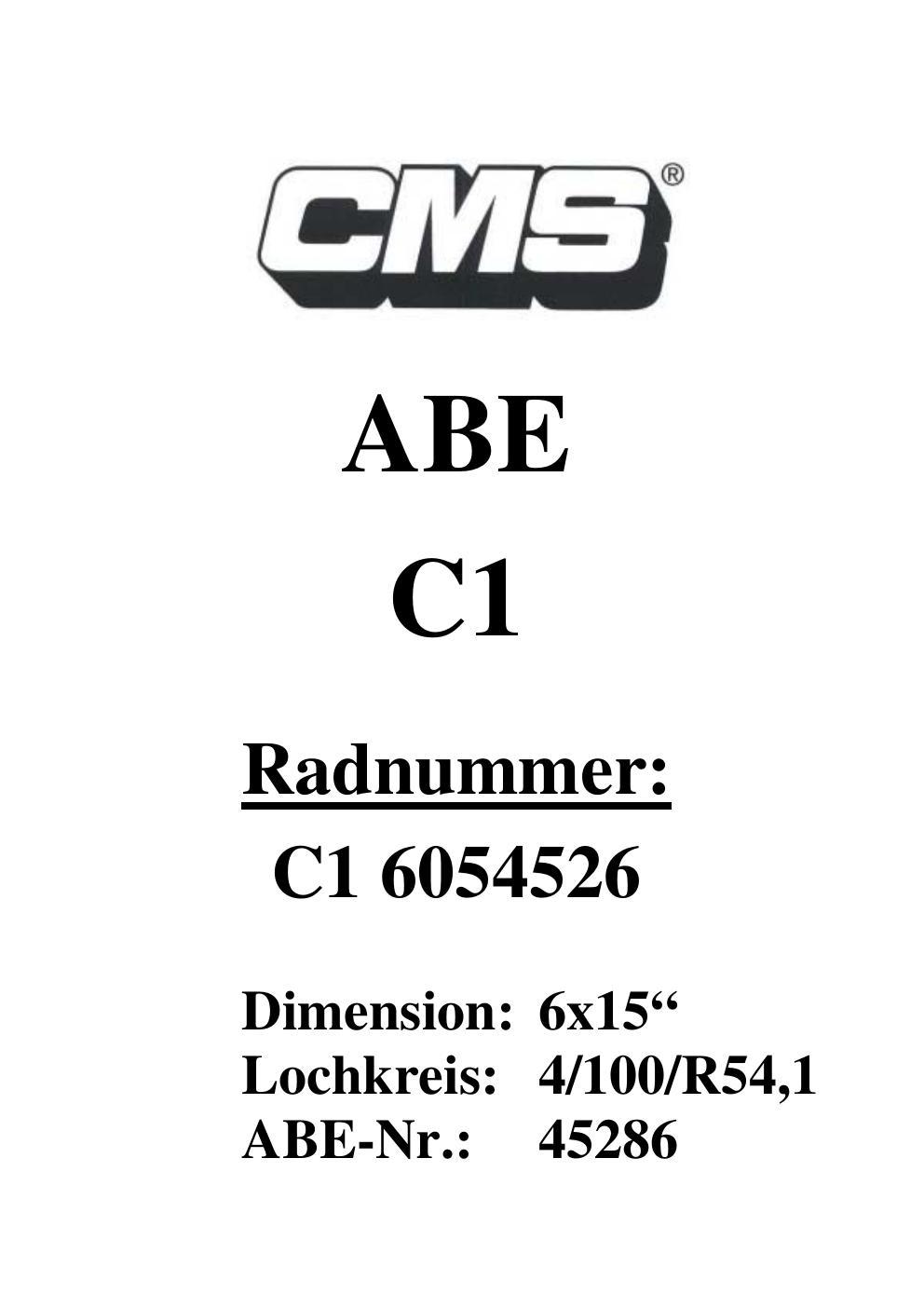 Dieses Gutachten (ABE) bezieht sich auf die Alufelge CMS UNKNOWN in der Ausführung ET 0, Mittenloch 0 mm (KBA 45286). Im PDF findest du typischerweise zulässige Reifengrößen, Auflagen/Anbauhinweise und – je nach Dokument – Hinweise zur Eintragung.