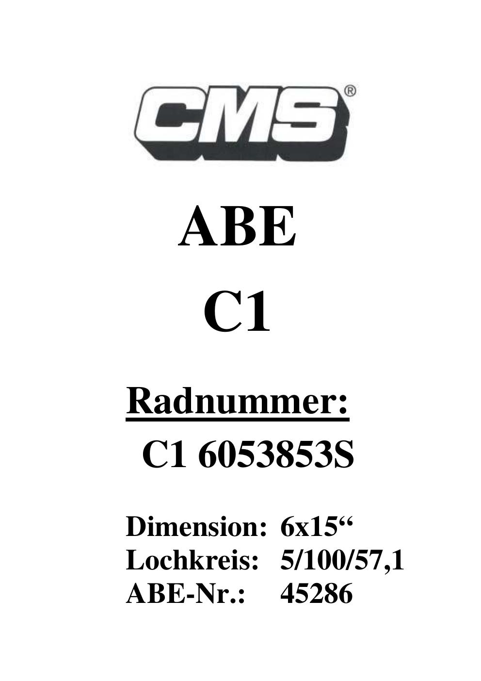 Dieses Gutachten (ABE) bezieht sich auf die Alufelge CMS UNKNOWN in der Ausführung ET 0, Mittenloch 0 mm (KBA 45286). Im PDF findest du typischerweise zulässige Reifengrößen, Auflagen/Anbauhinweise und – je nach Dokument – Hinweise zur Eintragung.