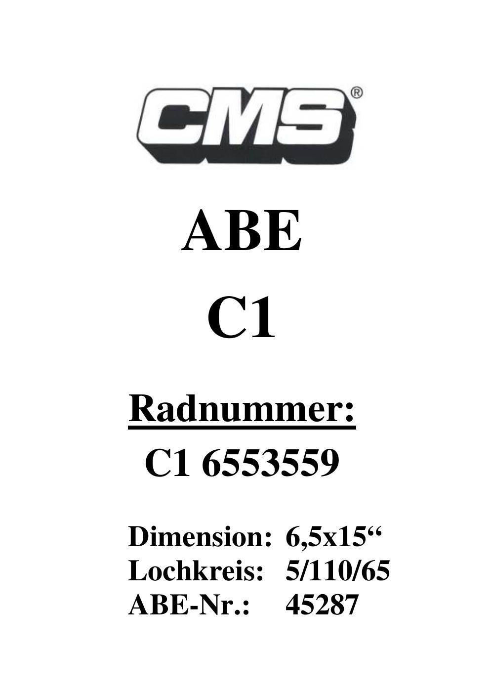 Dieses ABE gehört zur Felge CMS V1 in ET0 mit KBA 45287. Die Seite ist dafür gedacht, dass du schnell prüfen kannst, ob KBA, Design und Größe zu deiner Felge passen und danach direkt das richtige PDF lädst.