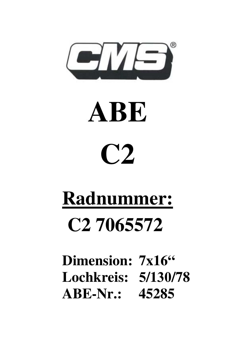 Dieses Gutachten (ABE) bezieht sich auf die Alufelge CMS UNKNOWN in der Ausführung ET 0, Mittenloch 0 mm (KBA 45285). Im PDF findest du typischerweise zulässige Reifengrößen, Auflagen/Anbauhinweise und – je nach Dokument – Hinweise zur Eintragung.
