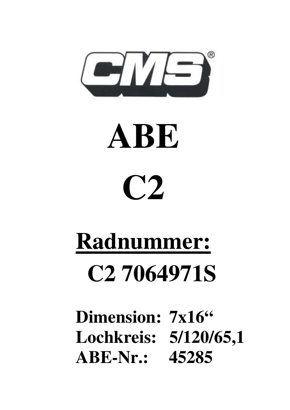 Dieses ABE gehört zur Felge CMS V1 in ET0 mit KBA 45285. Die Seite ist dafür gedacht, dass du schnell prüfen kannst, ob KBA, Design und Größe zu deiner Felge passen und danach direkt das richtige PDF lädst.