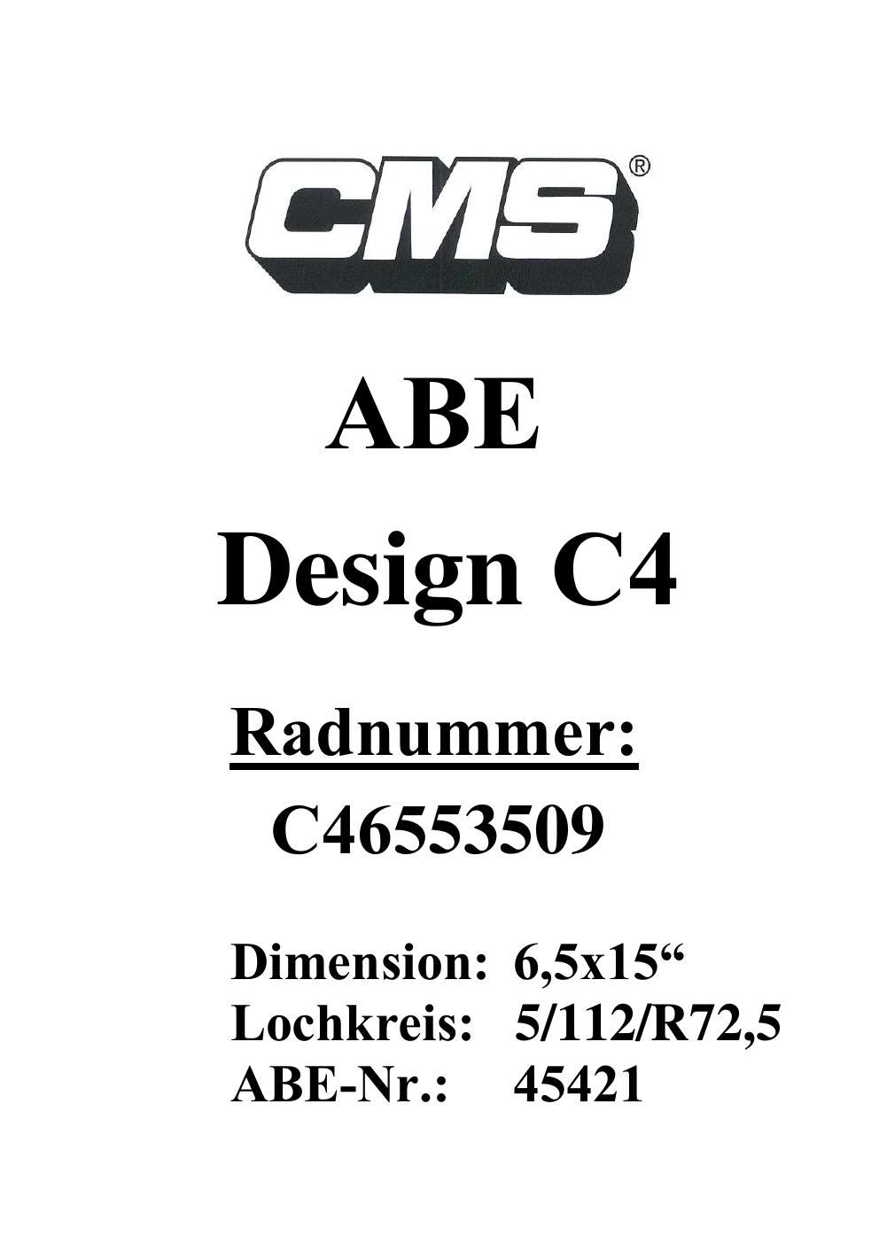 Felgengutachten / ABE für Alufelgen CMS UNKNOWN (ET 0, Mittenloch 0 mm) mit KBA 45421 (Zertifikatsnummer 45421). Hier kostenlos als PDF herunterladen. Der Download-Link ist 24 Stunden gültig und kann bis zu zwei Mal verwendet werden.