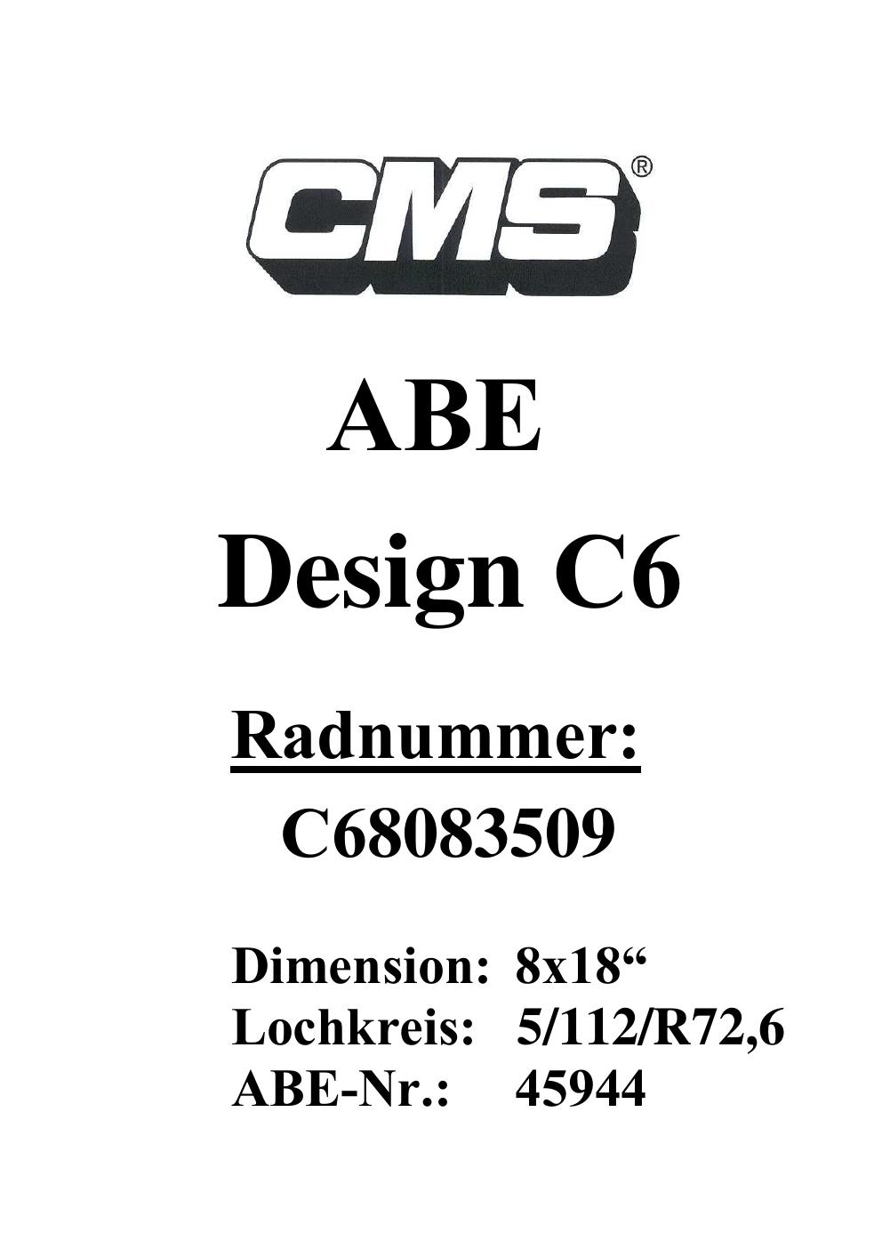 Dieses Gutachten (ABE) bezieht sich auf die Alufelge CMS UNKNOWN in der Ausführung ET 0, Mittenloch 0 mm (KBA 45944). Im PDF findest du typischerweise zulässige Reifengrößen, Auflagen/Anbauhinweise und – je nach Dokument – Hinweise zur Eintragung.