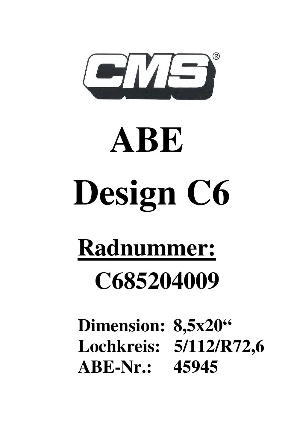 Dieses Gutachten (ABE) bezieht sich auf die Alufelge CMS UNKNOWN in der Ausführung ET 0, Mittenloch 0 mm (KBA 45945). Im PDF findest du typischerweise zulässige Reifengrößen, Auflagen/Anbauhinweise und – je nach Dokument – Hinweise zur Eintragung.