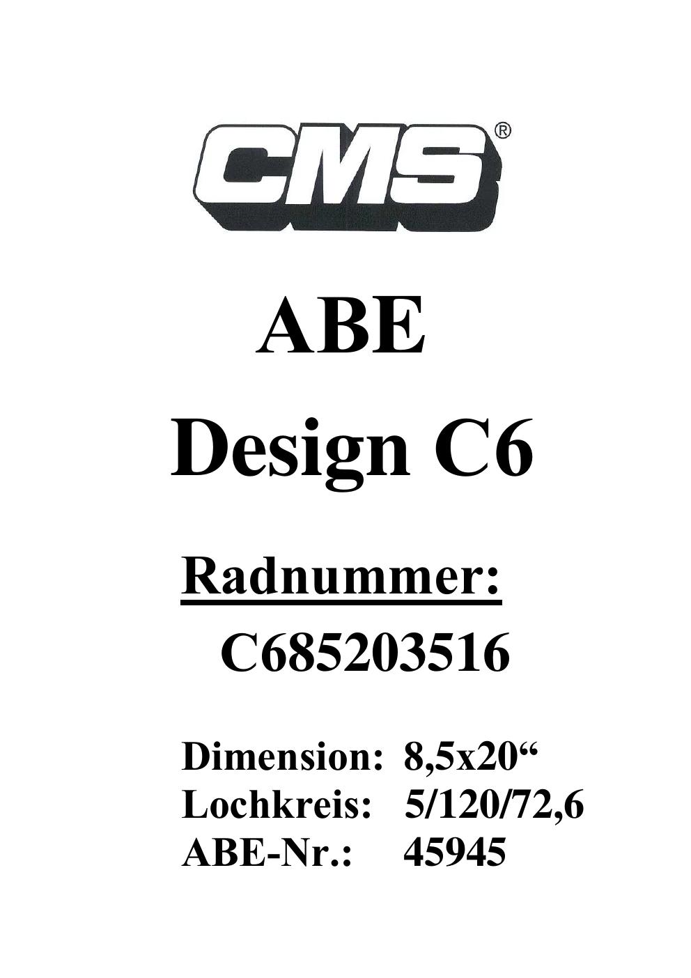 Felgengutachten / ABE für Alufelgen CMS UNKNOWN (ET 0, Mittenloch 0 mm) mit KBA 45945 (Zertifikatsnummer 45945). Hier kostenlos als PDF herunterladen. Der Download-Link ist 24 Stunden gültig und kann bis zu zwei Mal verwendet werden.