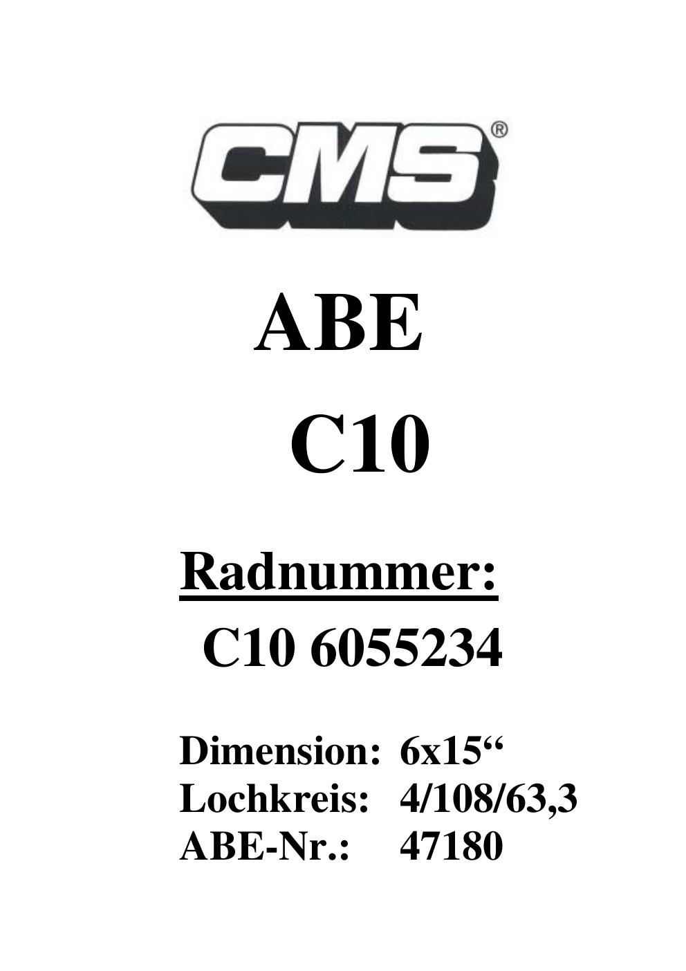 Dieses Gutachten (ABE) bezieht sich auf die Alufelge CMS UNKNOWN in der Ausführung ET 0, Mittenloch 0 mm (KBA 47180). Im PDF findest du typischerweise zulässige Reifengrößen, Auflagen/Anbauhinweise und – je nach Dokument – Hinweise zur Eintragung.