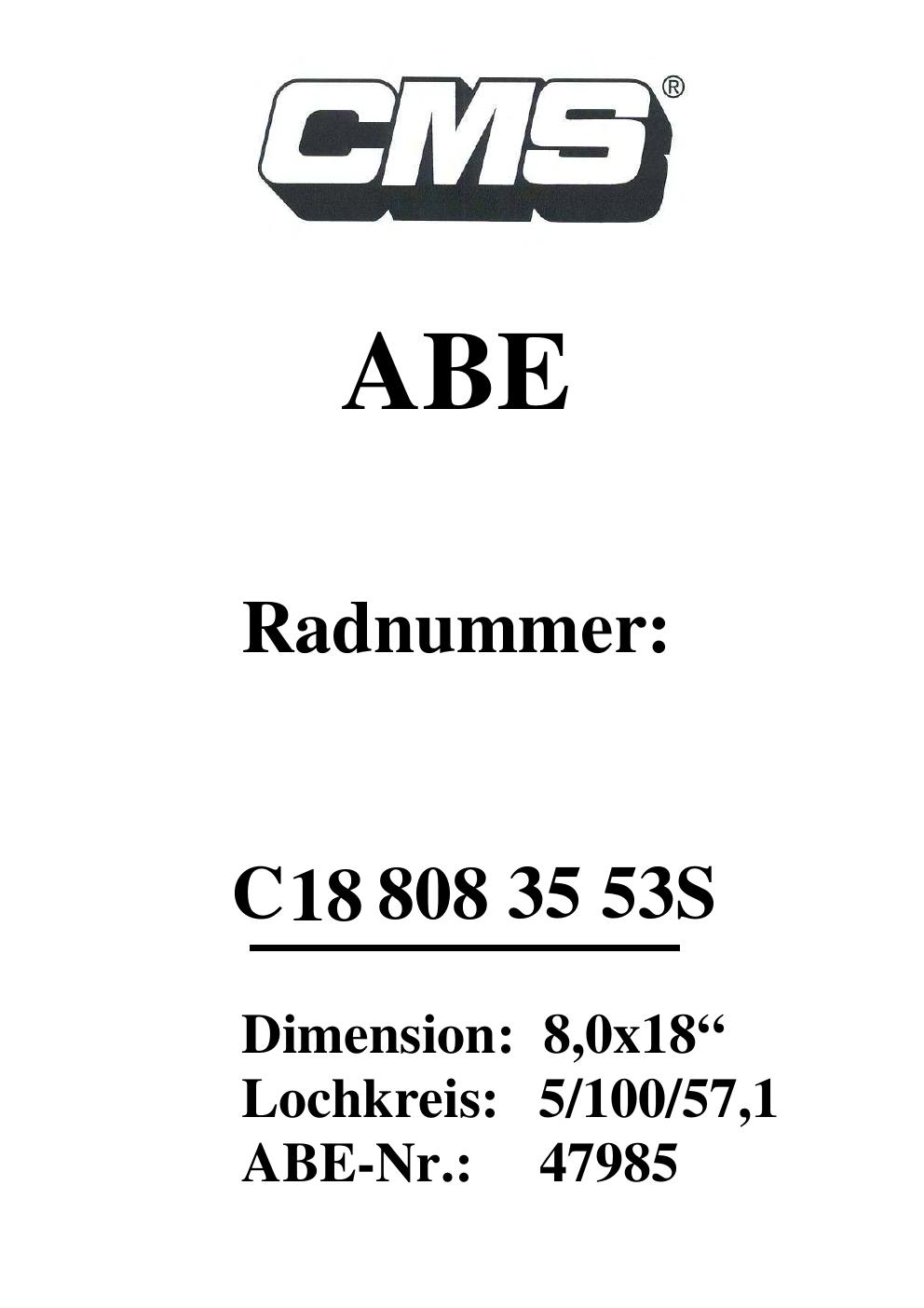 - CMS C18 – 8.0Jx18 ET0.0 (KBA 47985)