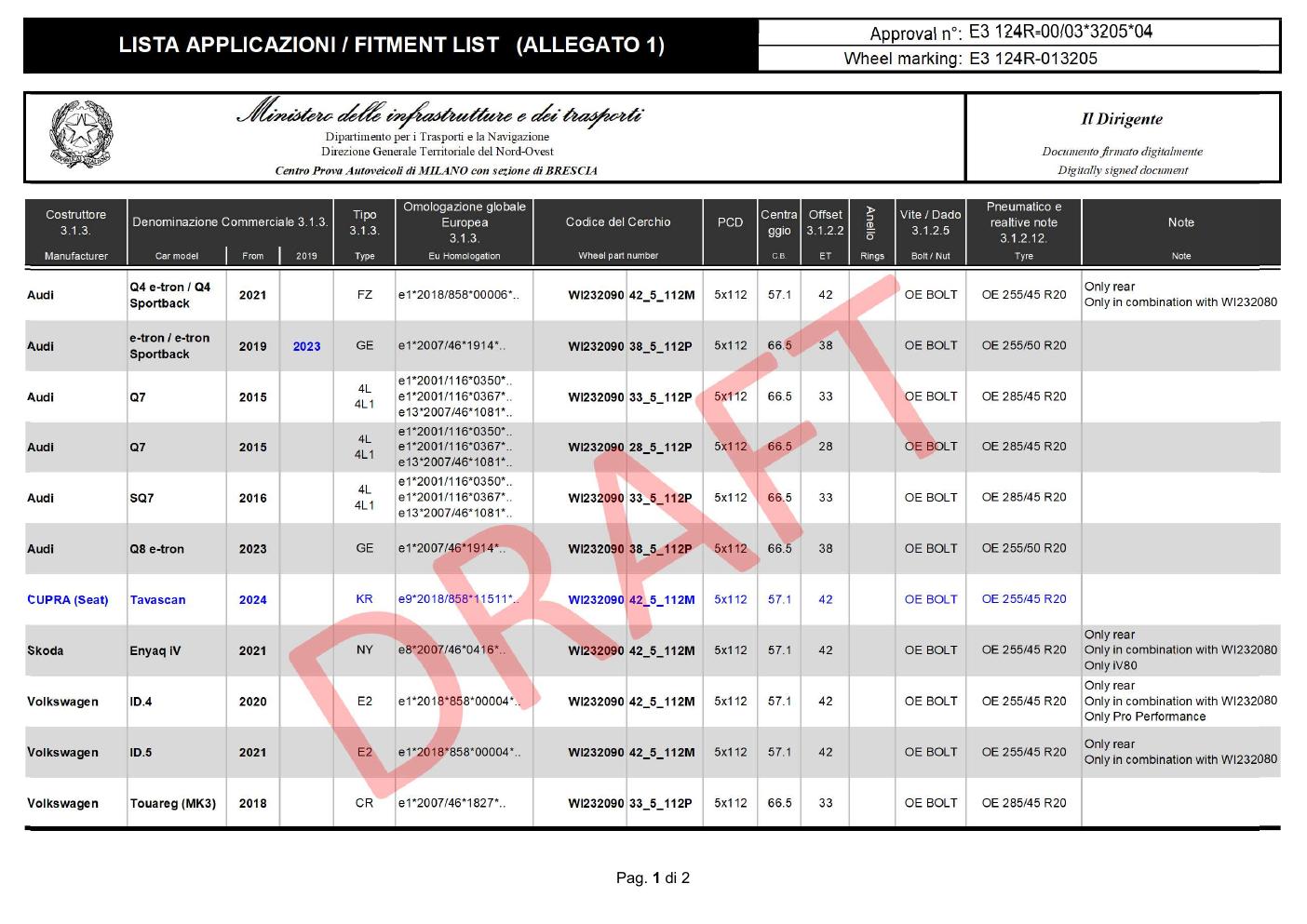 ece denominazione-commerciale-3-1-3-codice-del-cerchiodigitally-signed-documentdocumento-firmato-digitalmentee3-124r-013205e3-124r-0 brand-rial e Eu Homologation C.B. ET Rings Bolt / Nu