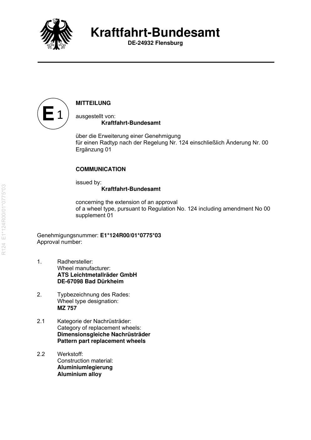 - Stimmt die KBA-Nummer auf der Felge mit diesem Dokument überein?