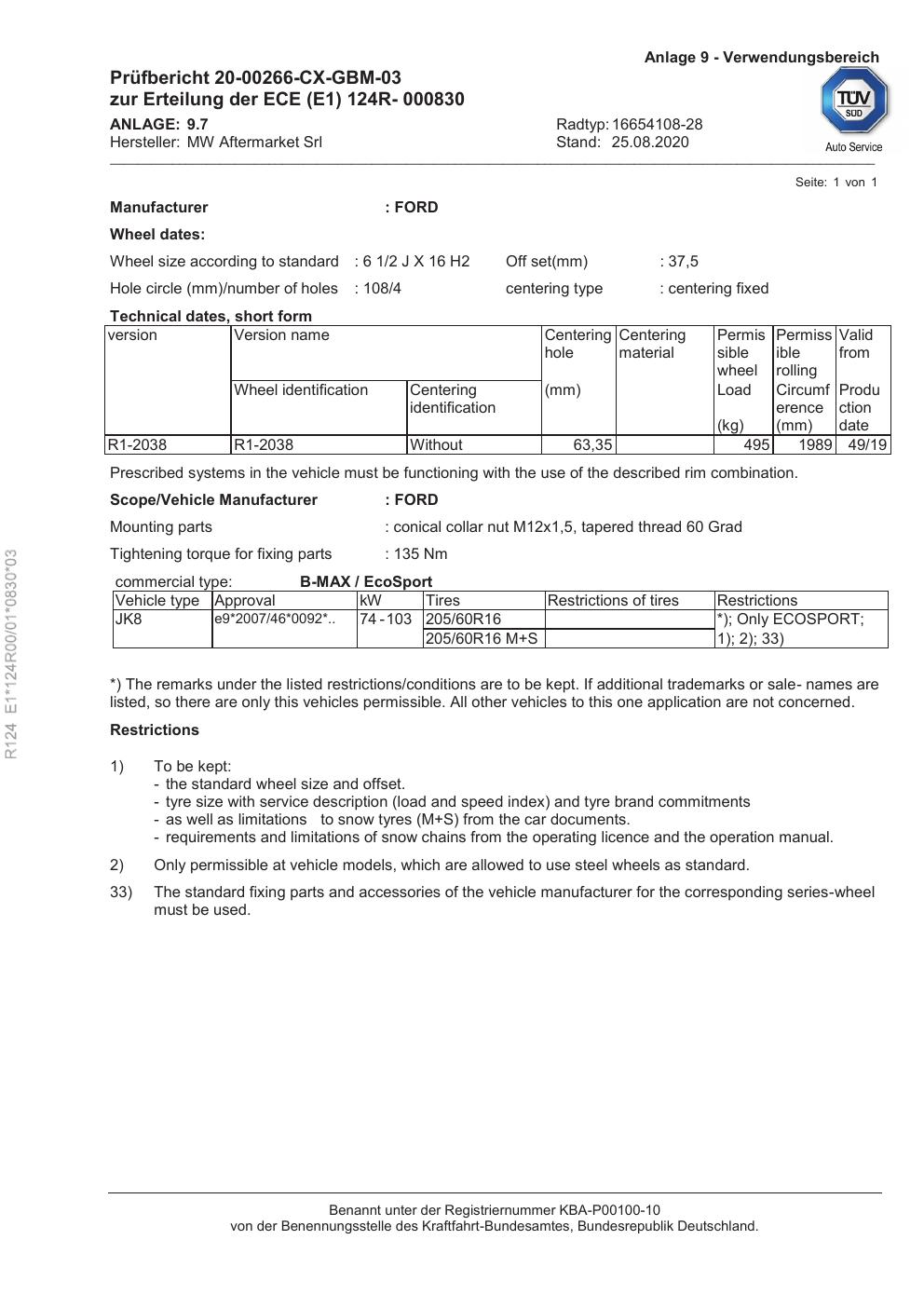 Felgengutachten / ece für Alufelgen co-rod R1-2038 (2Jx16 ET 0, Mittenloch 0 mm) (Zertifikatsnummer e1-124r00-01-0830-03). Hier kostenlos als PDF herunterladen. Der Download-Link ist 24 Stunden gültig und kann bis zu zwei Mal verwendet werden.