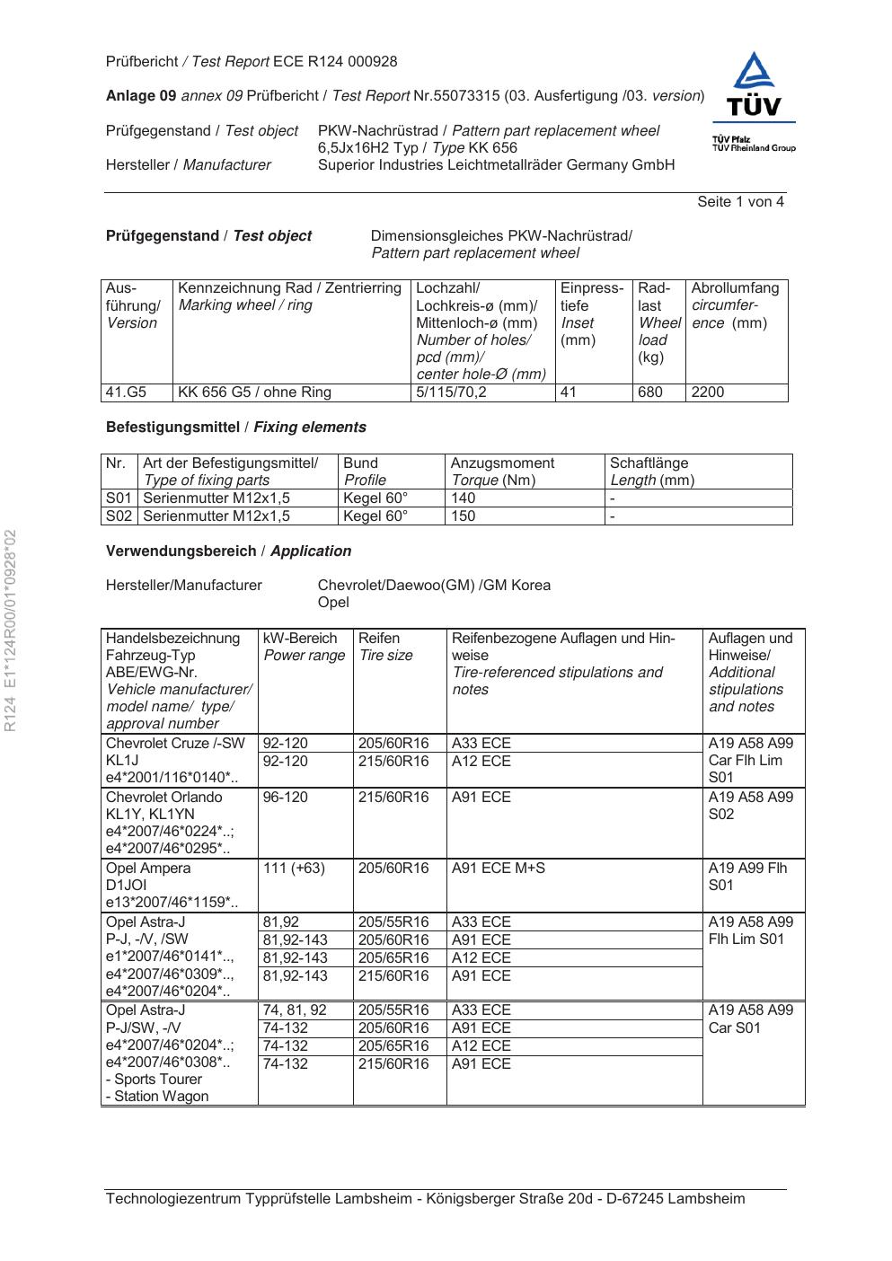 Dieses Gutachten (ece) bezieht sich auf die Alufelge Rial KK 656 in der Ausführung 6.5Jx16 ET 0, Mittenloch 0 mm . Im PDF findest du typischerweise zulässige Reifengrößen, Auflagen/Anbauhinweise und – je nach Dokument – Hinweise zur Eintragung.