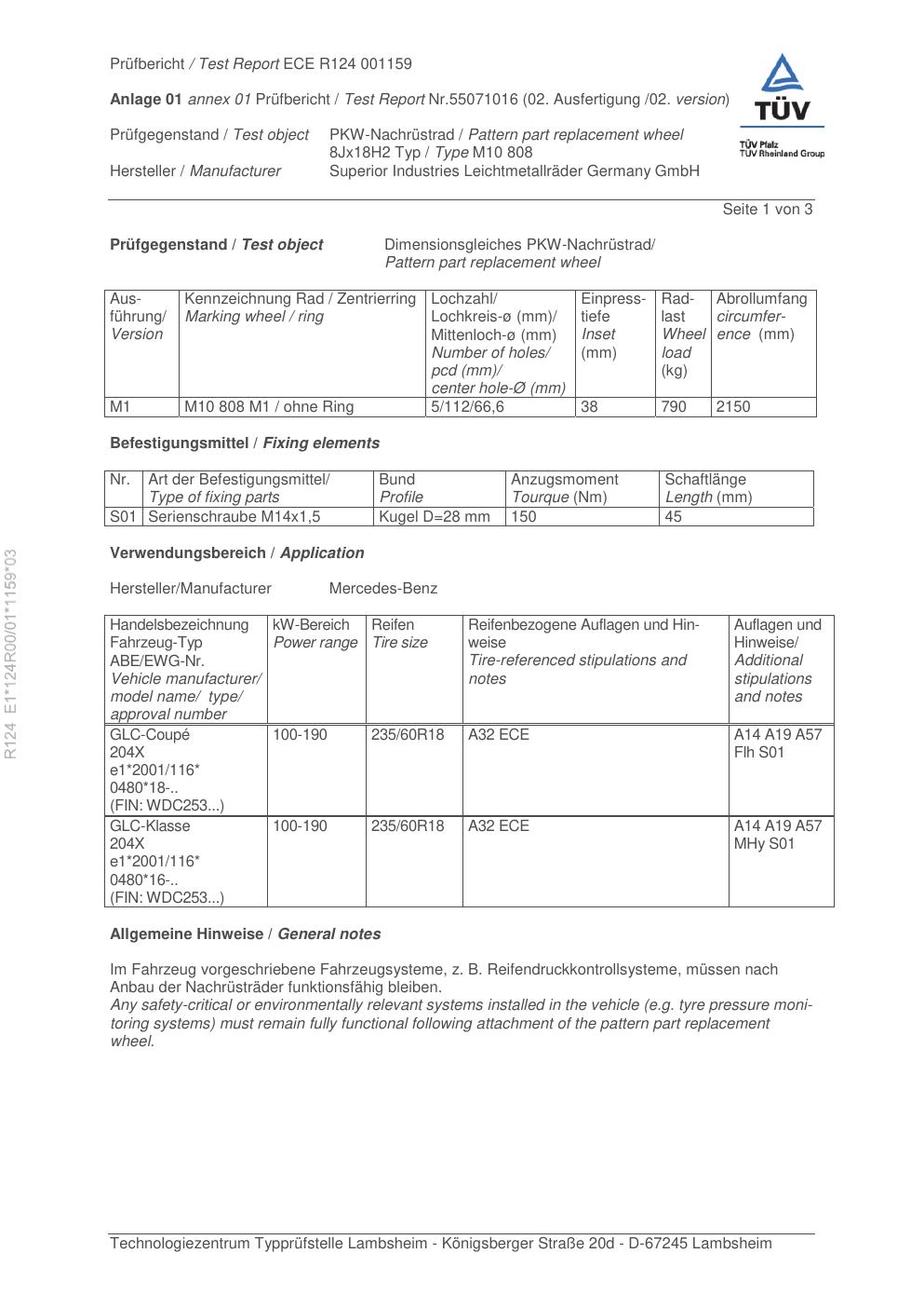 Felgengutachten / ece für Alufelgen Rial M10 808 (8Jx18 ET 0, Mittenloch 0 mm) (Zertifikatsnummer e1-124r00-01-1159-03). Hier kostenlos als PDF herunterladen. Der Download-Link ist 24 Stunden gültig und kann bis zu zwei Mal verwendet werden.
