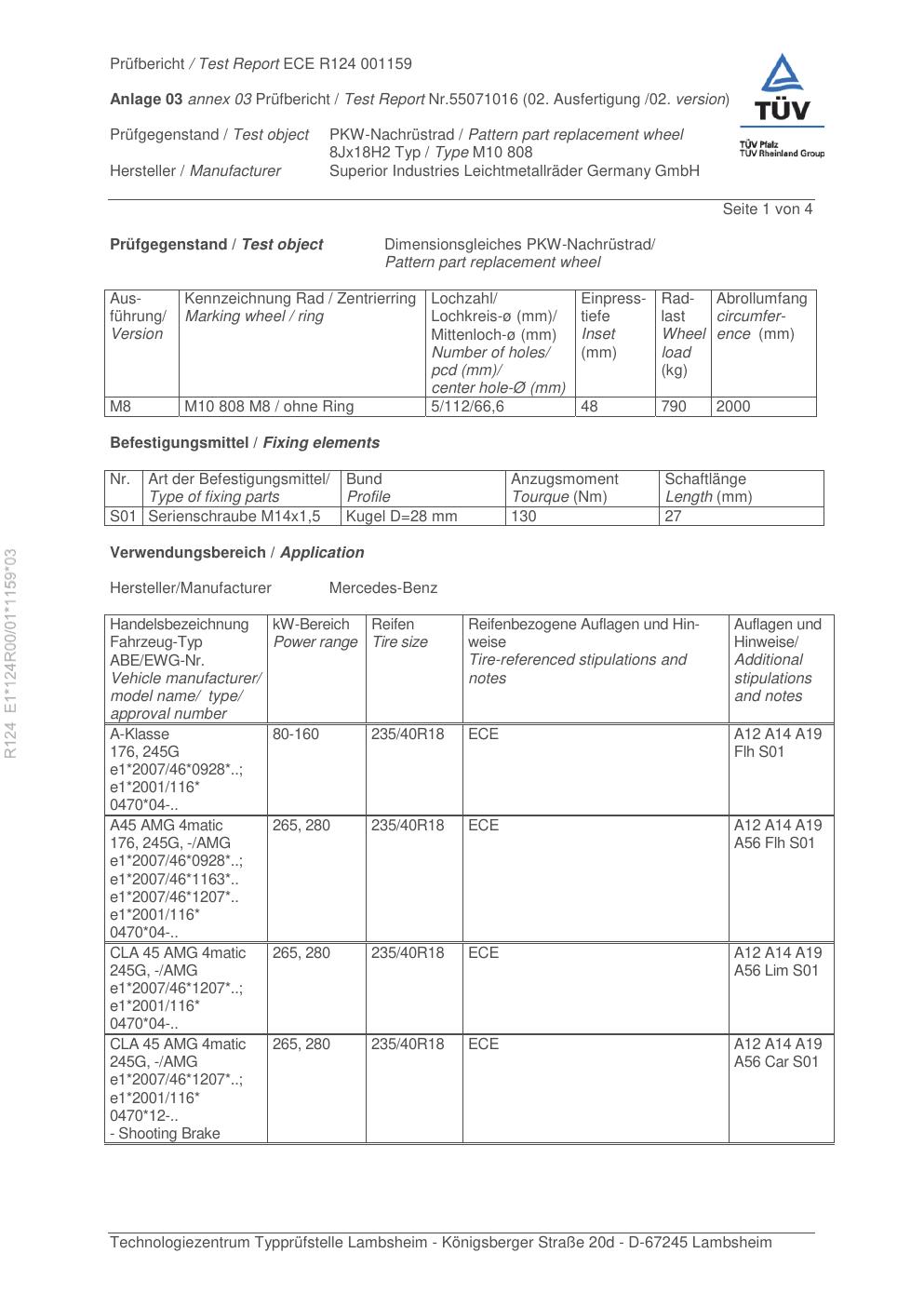 Felgengutachten / ece für Alufelgen Rial M10 808 (8Jx18 ET 0, Mittenloch 0 mm) (Zertifikatsnummer e1-124r00-01-1159-03). Hier kostenlos als PDF herunterladen. Der Download-Link ist 24 Stunden gültig und kann bis zu zwei Mal verwendet werden.
