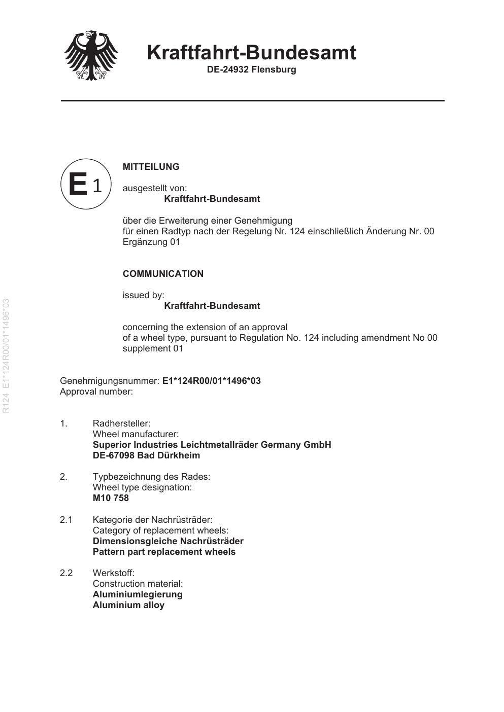Felgengutachten / ece für Alufelgen Rial AST (7.5Jx18 ET 0, Mittenloch 0 mm) (Zertifikatsnummer e1-124r00-01-1496-03). Hier kostenlos als PDF herunterladen. Der Download-Link ist 24 Stunden gültig und kann bis zu zwei Mal verwendet werden.