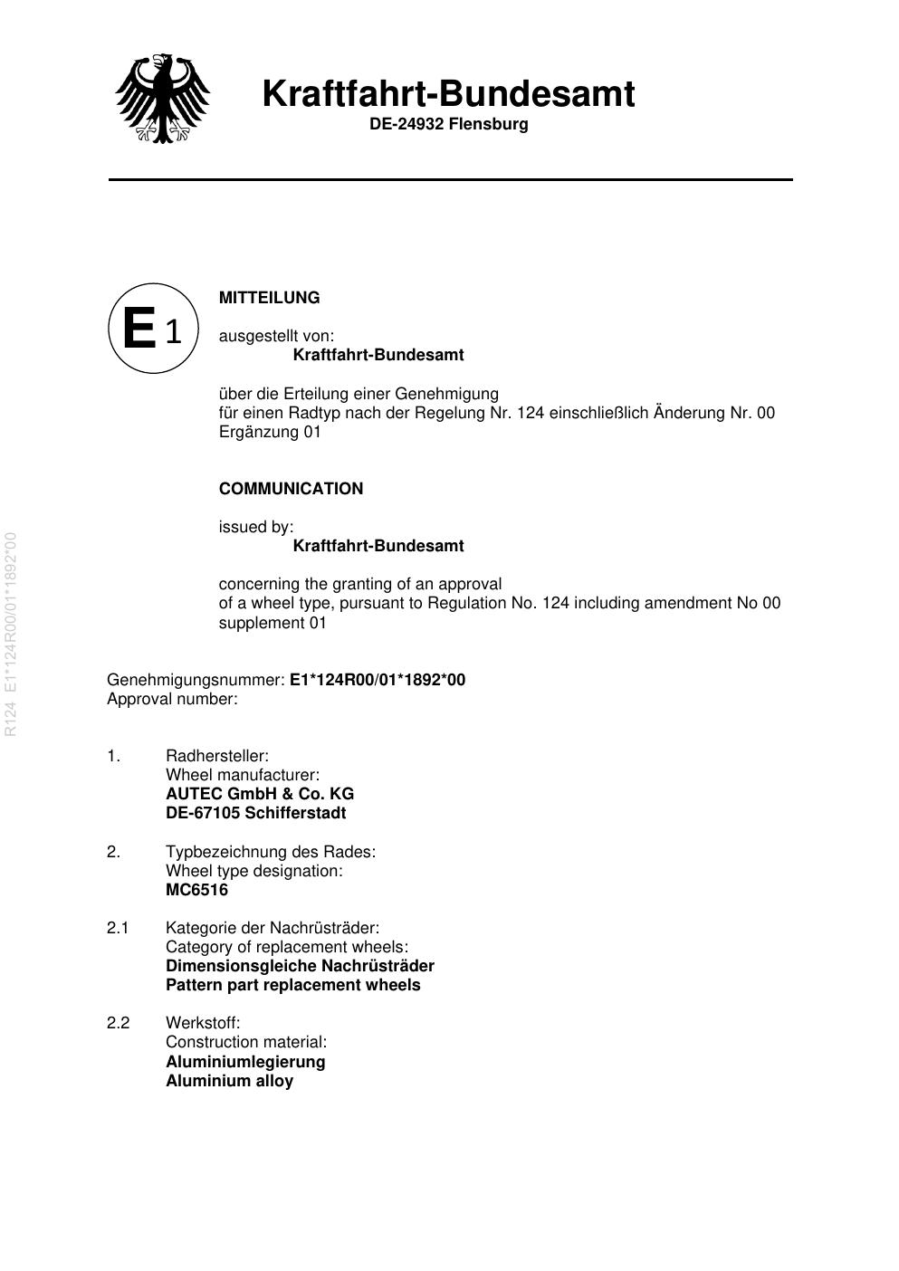- Stimmt die KBA-Nummer auf der Felge mit diesem Dokument überein?