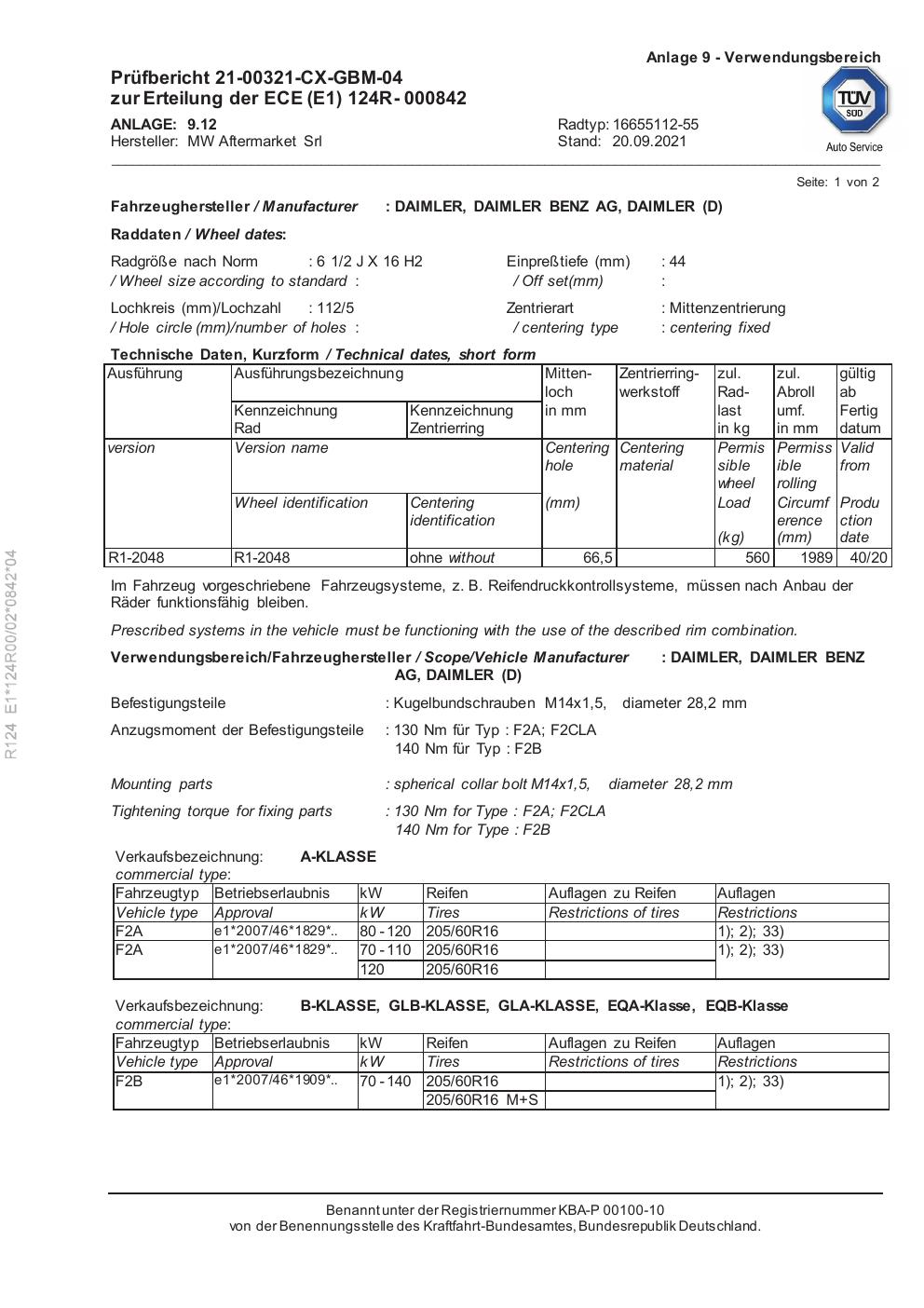 Felgengutachten / ece für Alufelgen Rial 16655112-55 (2Jx16 ET 0, Mittenloch 0 mm) (Zertifikatsnummer e1-124r00-02-0842-04). Hier kostenlos als PDF herunterladen. Der Download-Link ist 24 Stunden gültig und kann bis zu zwei Mal verwendet werden.