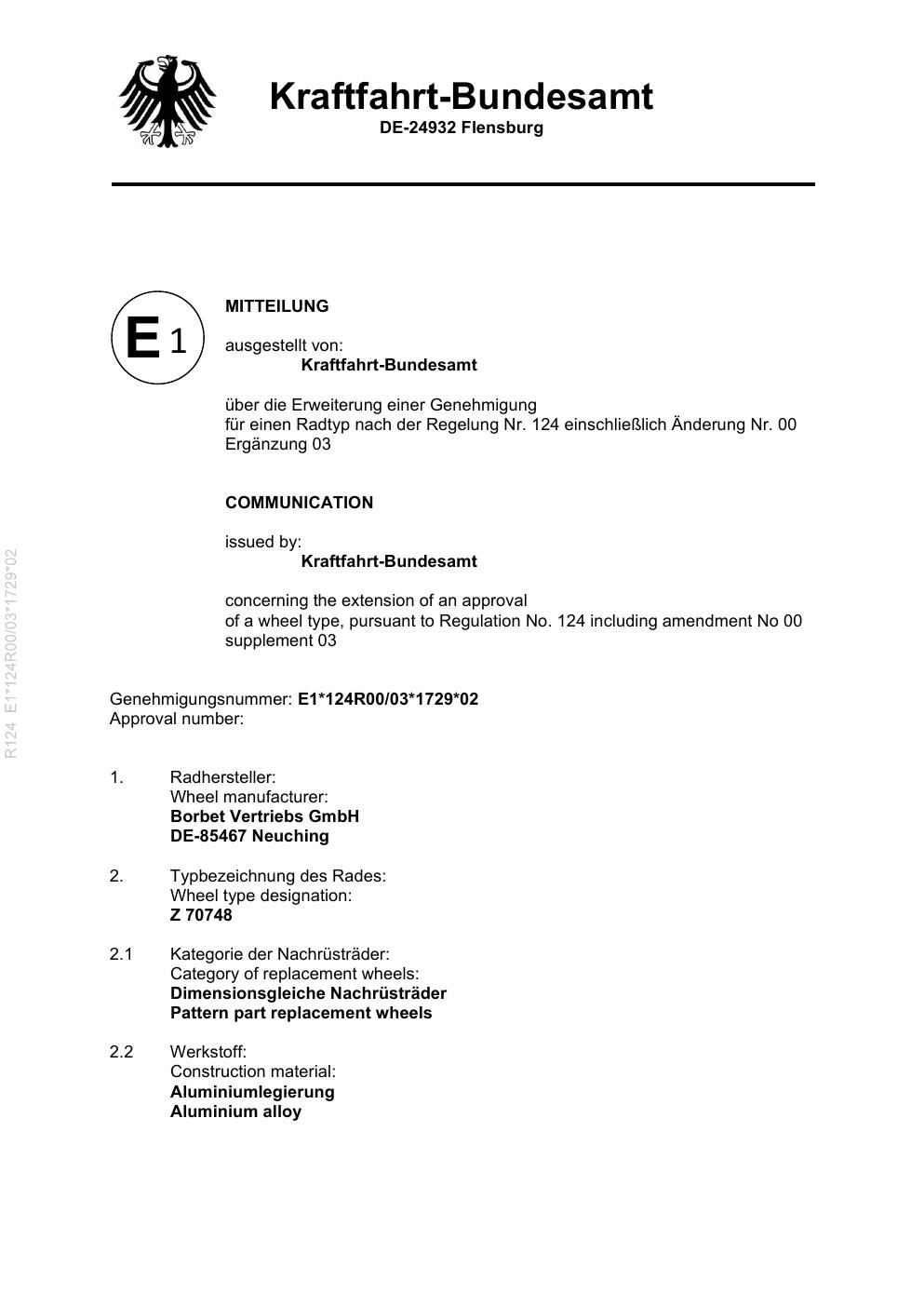 - Stimmt die KBA-Nummer auf der Felge mit diesem Dokument überein?