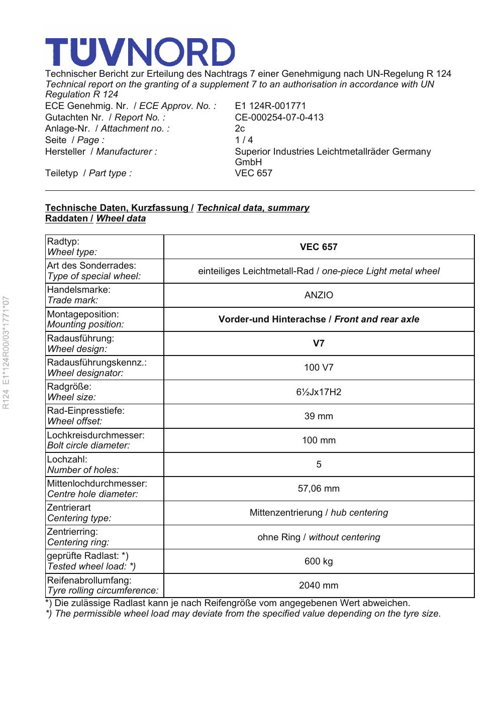 • Stimmt die KBA-Nummer auf der Felge mit diesem Dokument überein?