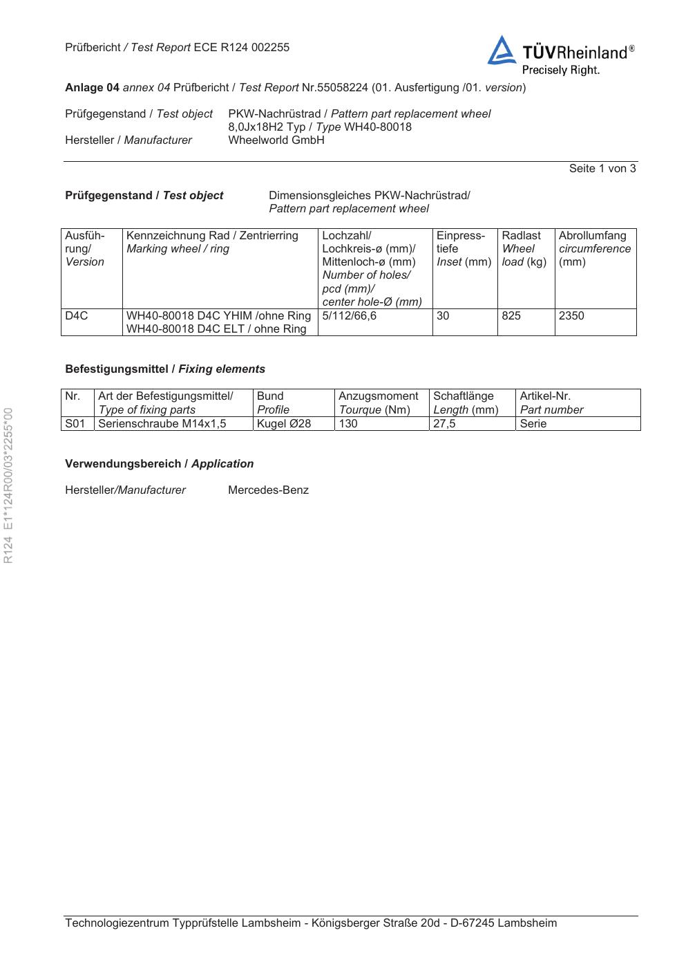 Felgengutachten / ece für Alufelgen Rial WH40-80018 (8Jx18 ET 0, Mittenloch 0 mm) (Zertifikatsnummer e1-124r00-03-2255-00). Hier kostenlos als PDF herunterladen. Der Download-Link ist 24 Stunden gültig und kann bis zu zwei Mal verwendet werden.