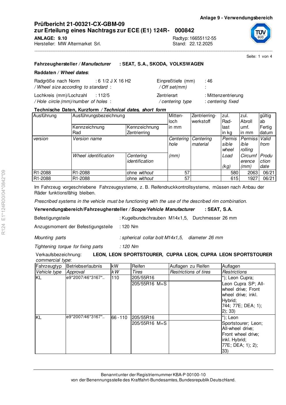 Felgengutachten / ece für Alufelgen Rial 16655112 -55 (2Jx16 ET 0, Mittenloch 0 mm) (Zertifikatsnummer e1-124r00-04-0842-09). Hier kostenlos als PDF herunterladen. Der Download-Link ist 24 Stunden gültig und kann bis zu zwei Mal verwendet werden.