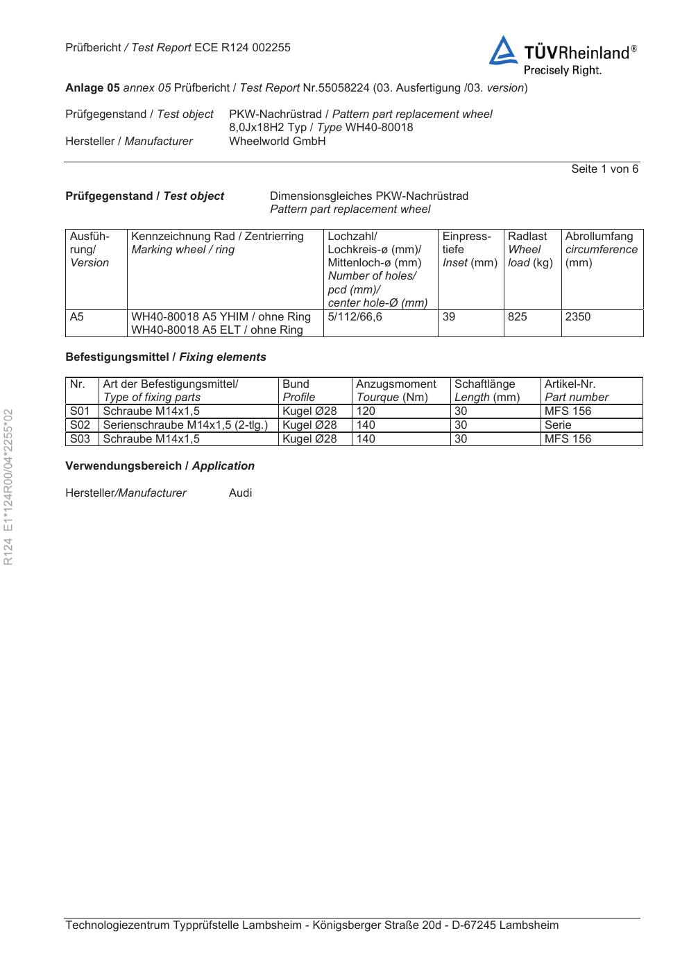 Felgengutachten / ece für Alufelgen Rial WH40-80018 (8Jx18 ET 0, Mittenloch 0 mm) (Zertifikatsnummer e1-124r00-04-2255-02). Hier kostenlos als PDF herunterladen. Der Download-Link ist 24 Stunden gültig und kann bis zu zwei Mal verwendet werden.
