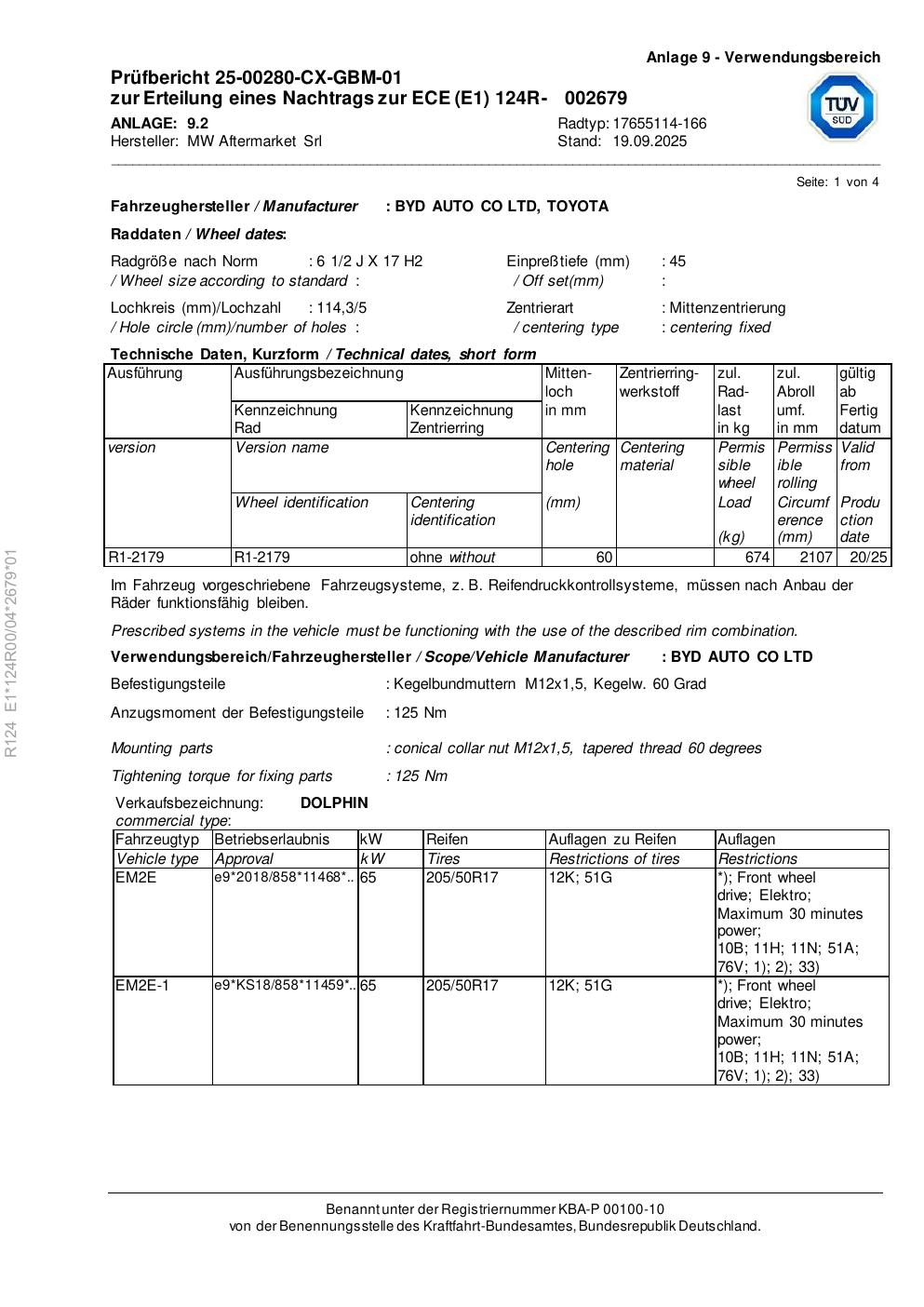 Felgengutachten / ece für Alufelgen Rial 17655114 -166 (2Jx17 ET 0, Mittenloch 0 mm) (Zertifikatsnummer e1-124r00-04-2679-01). Hier kostenlos als PDF herunterladen. Der Download-Link ist 24 Stunden gültig und kann bis zu zwei Mal verwendet werden.