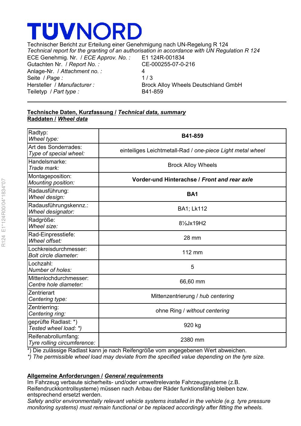 • Stimmt die KBA-Nummer auf der Felge mit diesem Dokument überein?
