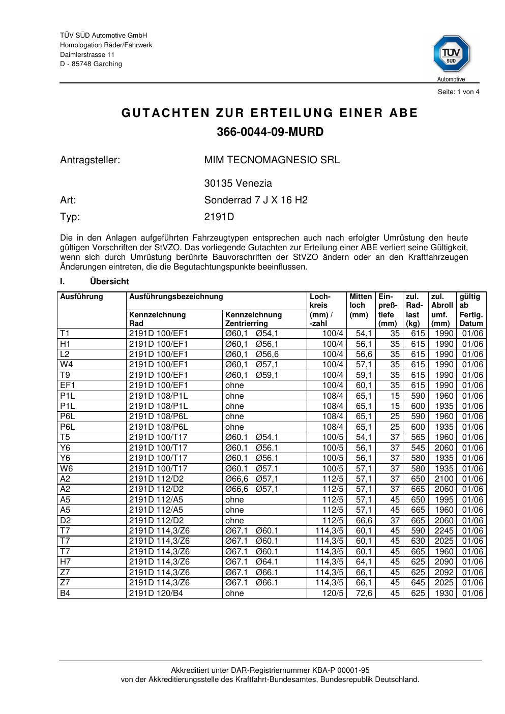Dieses Gutachten (festigkeit) bezieht sich auf die Alufelge ATS 2191D in der Ausführung 7Jx16 ET 0, Mittenloch 0 mm . Im PDF findest du typischerweise zulässige Reifengrößen, Auflagen/Anbauhinweise und – je nach Dokument – Hinweise zur Eintragung.