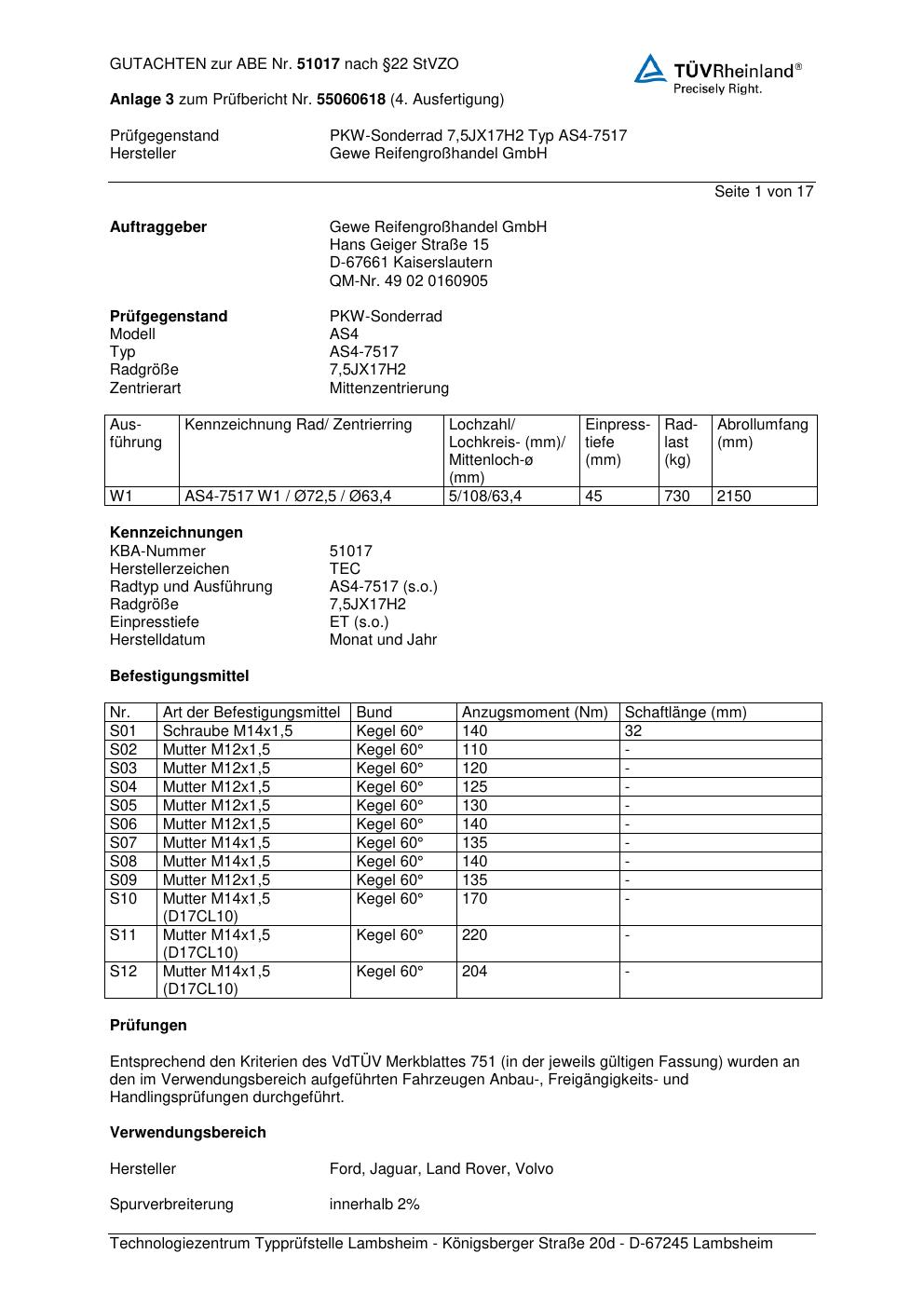 - GEWE Reifen- und Rädergroßhandel GmbH AS4-7517 – 0.0Jx0 ET0.0 (KBA 51017)