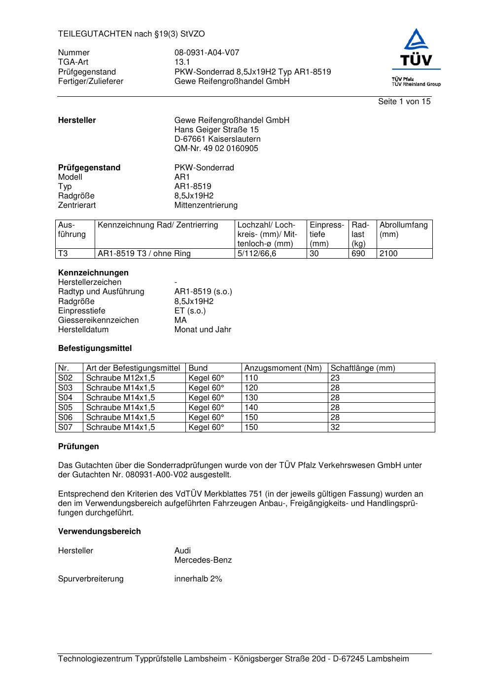 teilegutachten 08-0931-a04-v07 GEWE AR1-8519