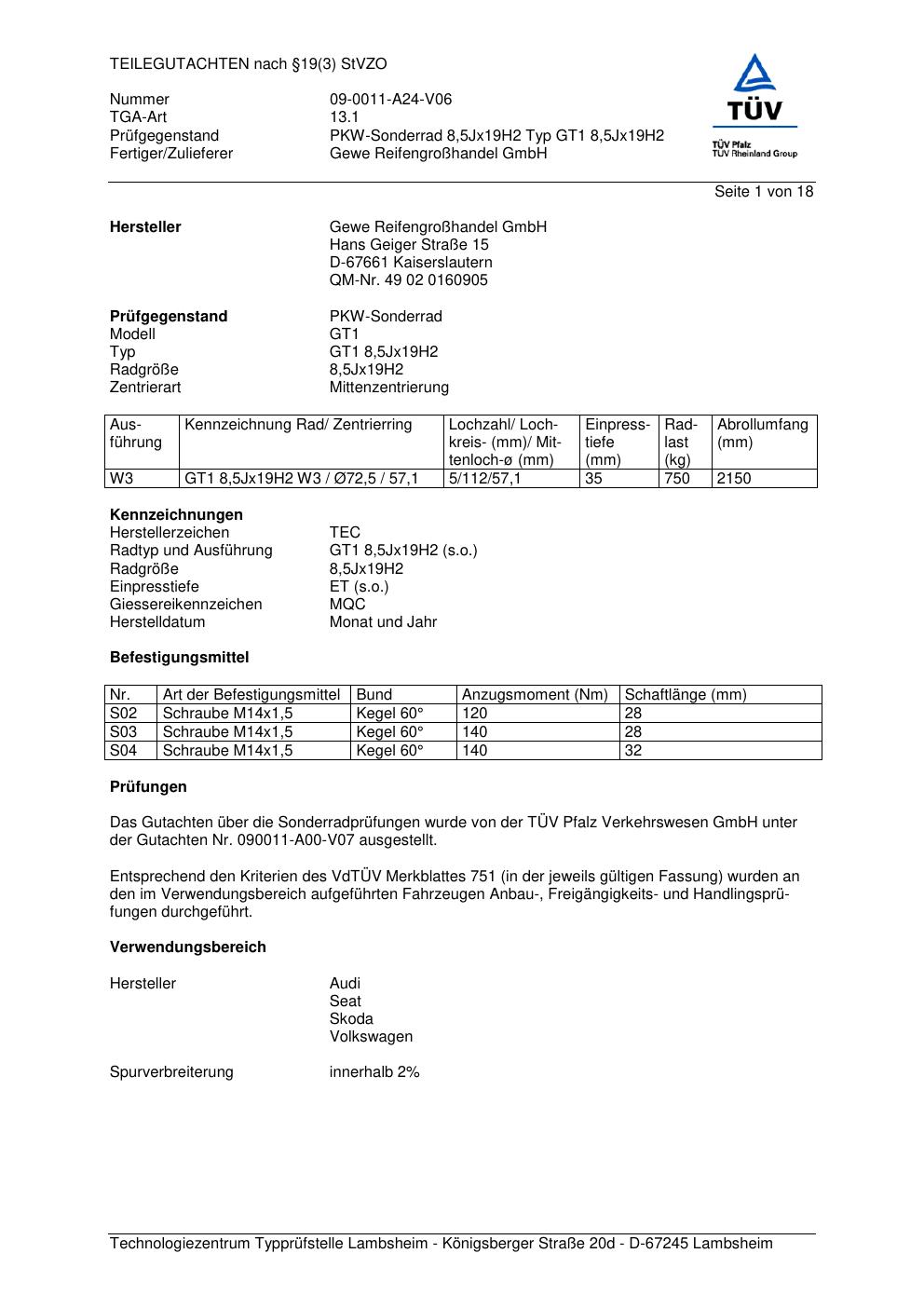 teilegutachten 09-0011-a24-v06 GEWE GT1