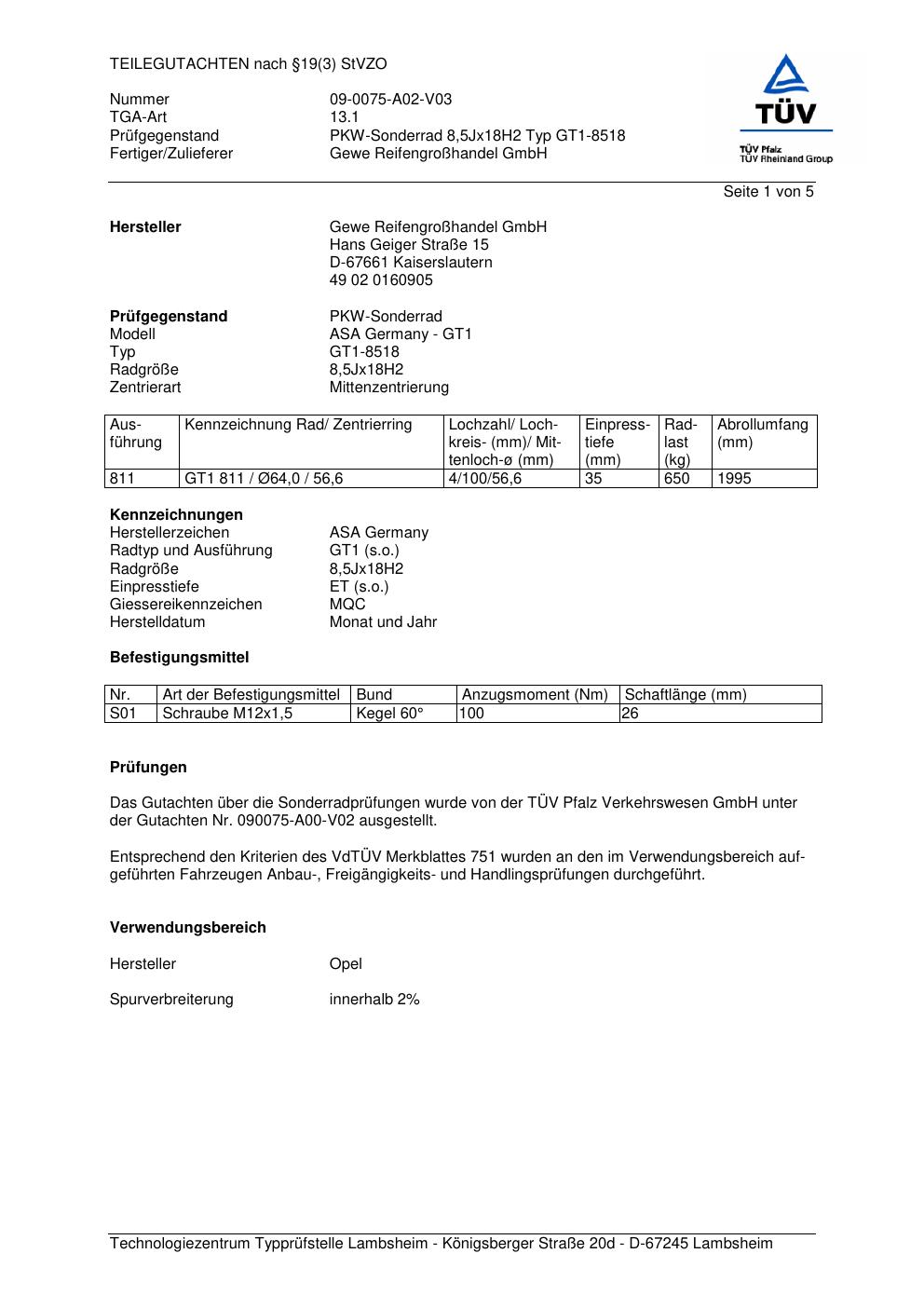 teilegutachten 09-0075-a02-v03 GEWE GT1-8518