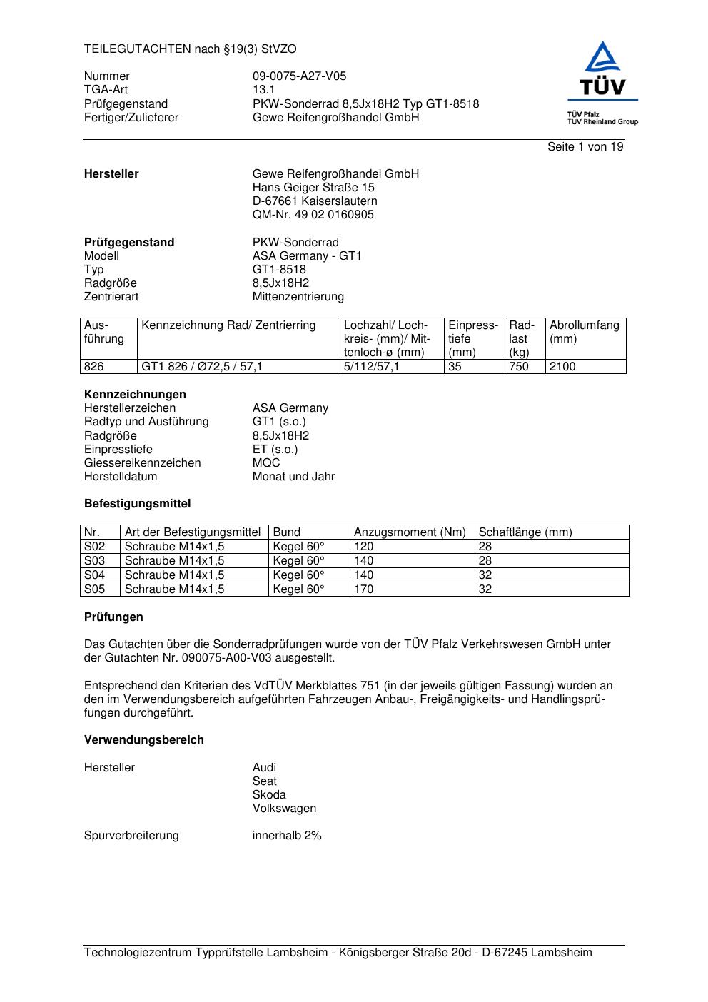 teilegutachten 09-0075-a27-v05 GEWE GT1-8518