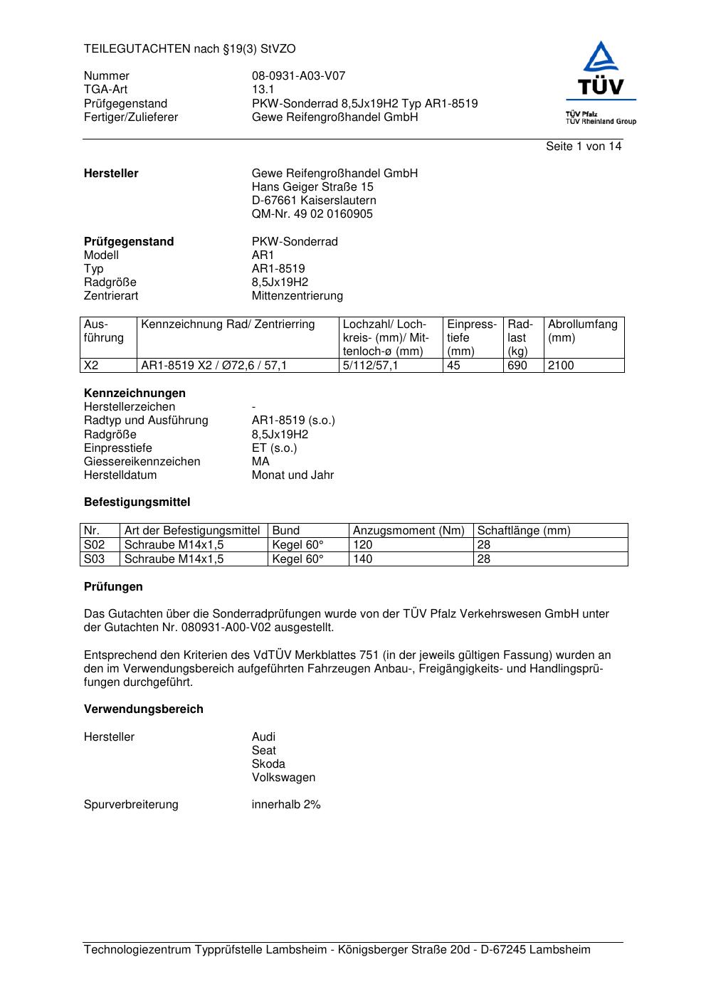 teilegutachten 08-0931-a03-v07 GEWE AR1-8519
