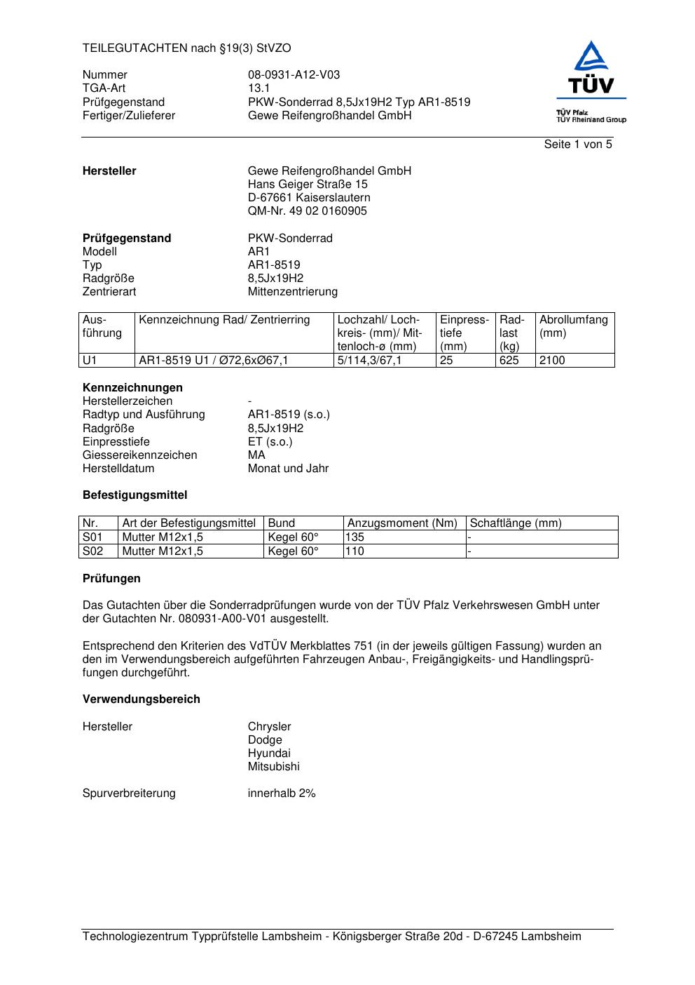 teilegutachten 08-0931-a12-v03 GEWE AR1-8519