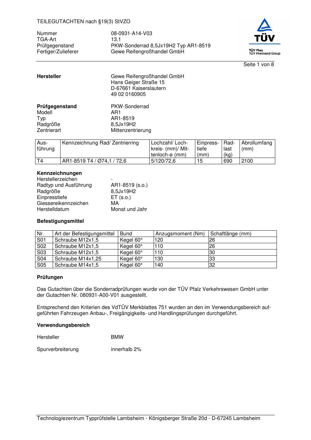 teilegutachten 08-0931-a14-v03 GEWE AR1-8519