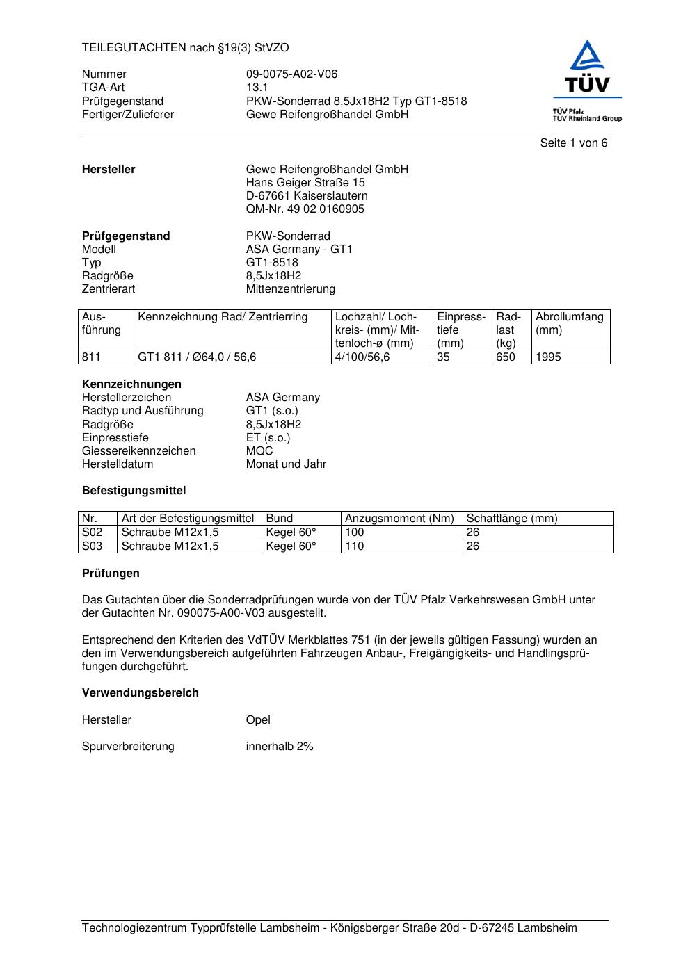 teilegutachten 09-0075-a02-v06 GEWE GT1-8518