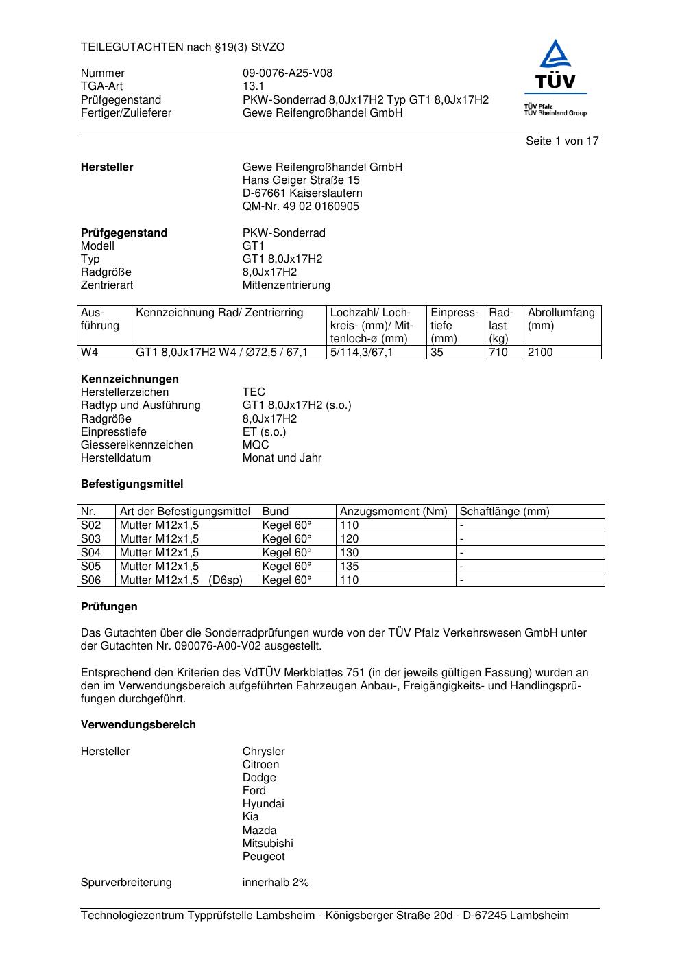 teilegutachten 09-0076-a25-v08 GEWE GT1