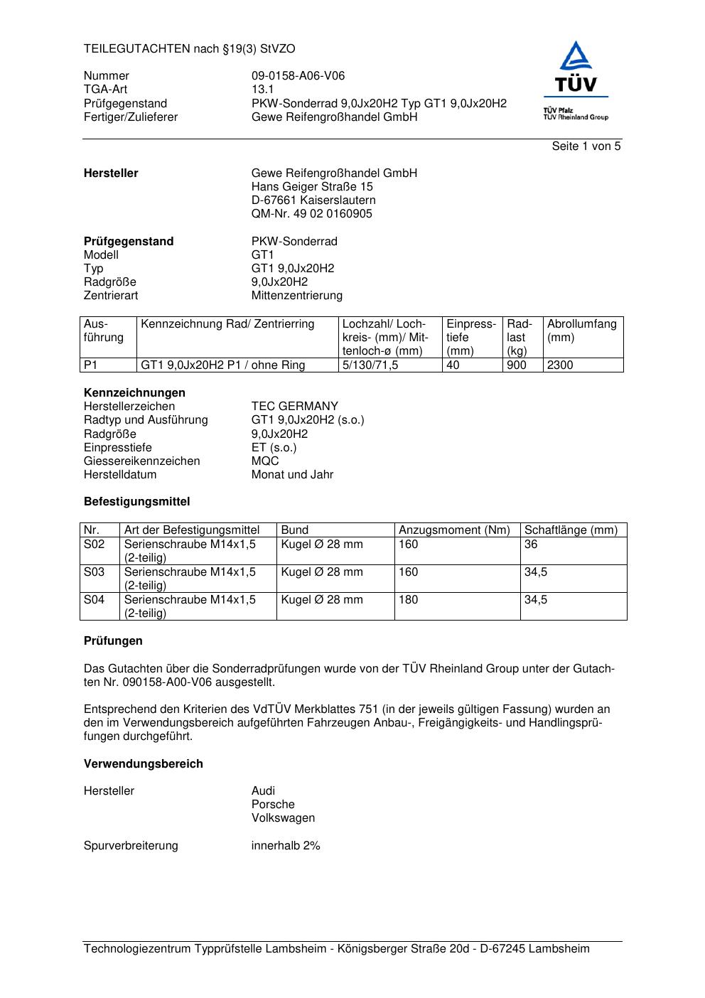 teilegutachten 09-0158-a06-v06 GEWE GT1