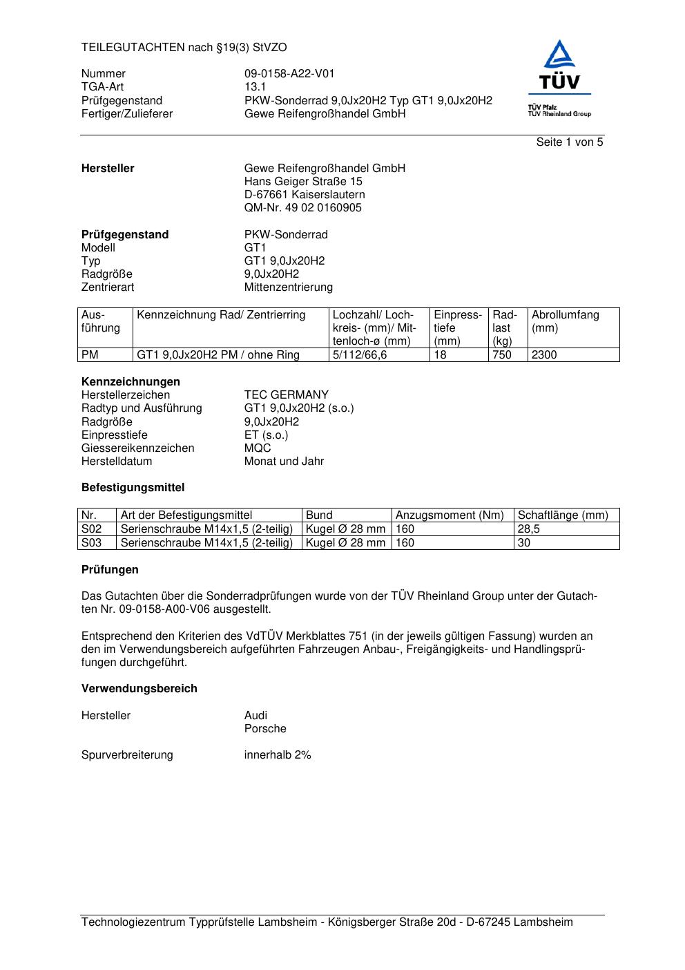 teilegutachten 09-0158-a22-v01 GEWE GT1