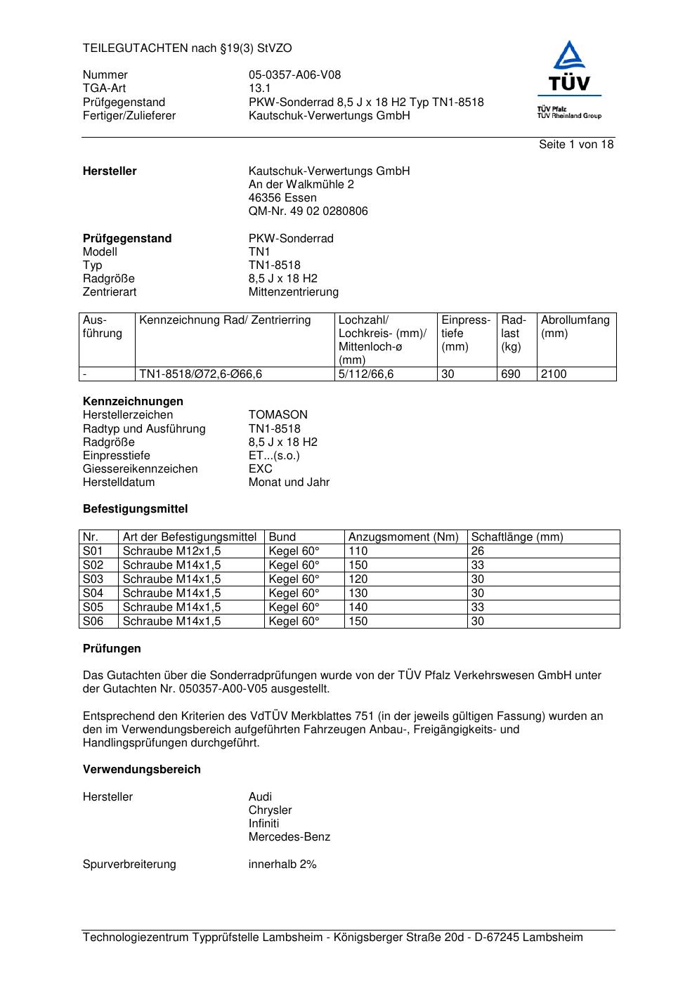 teilegutachten 05-0357-a06-v08 TOMASON TN1-8518