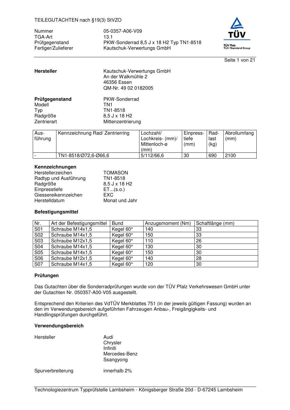 teilegutachten 05-0357-a06-v09 TOMASON TN1-8518