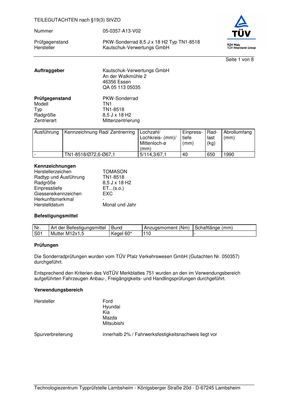 teilegutachten 05-0357-a13-v02 TOMASON TN1-8518