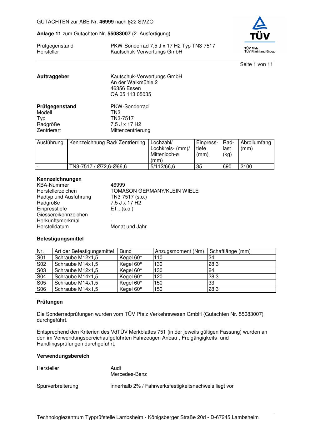 Dieses abe gehört zur Felge TOMASON TN3-7517 in ET0 mit KBA 46999. Die Seite ist dafür gedacht, dass du schnell prüfen kannst, ob KBA, Design und Größe zu deiner Felge passen und danach direkt das richtige PDF lädst.