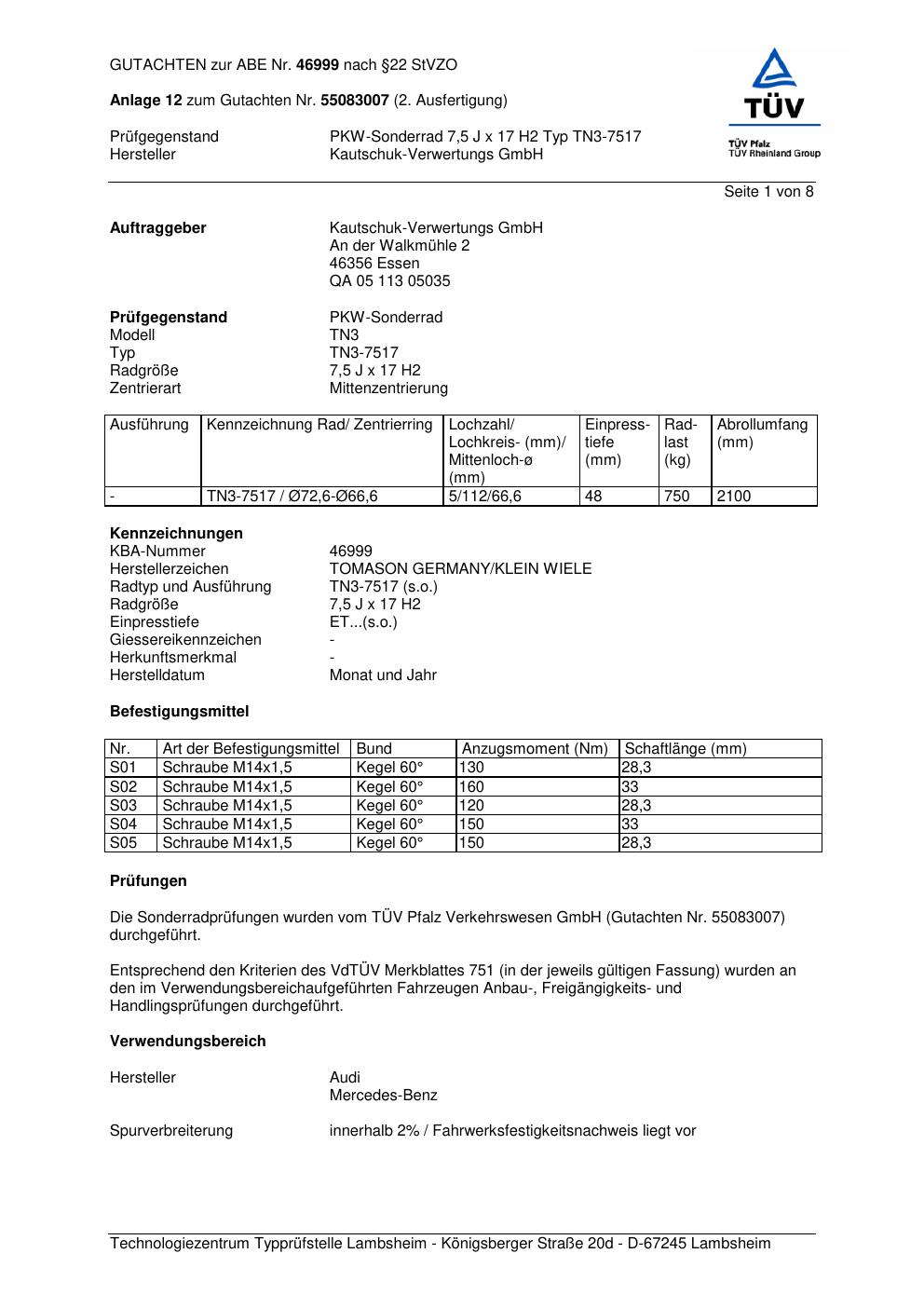 Dieses abe gehört zur Felge TOMASON TN3-7517 in ET0 mit KBA 46999. Die Seite ist dafür gedacht, dass du schnell prüfen kannst, ob KBA, Design und Größe zu deiner Felge passen und danach direkt das richtige PDF lädst.