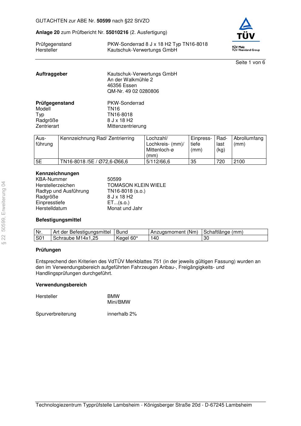 Dieses abe gehört zur Felge TOMASON TN16-8018 in ET0 mit KBA 50599. Die Seite ist dafür gedacht, dass du schnell prüfen kannst, ob KBA, Design und Größe zu deiner Felge passen und danach direkt das richtige PDF lädst.